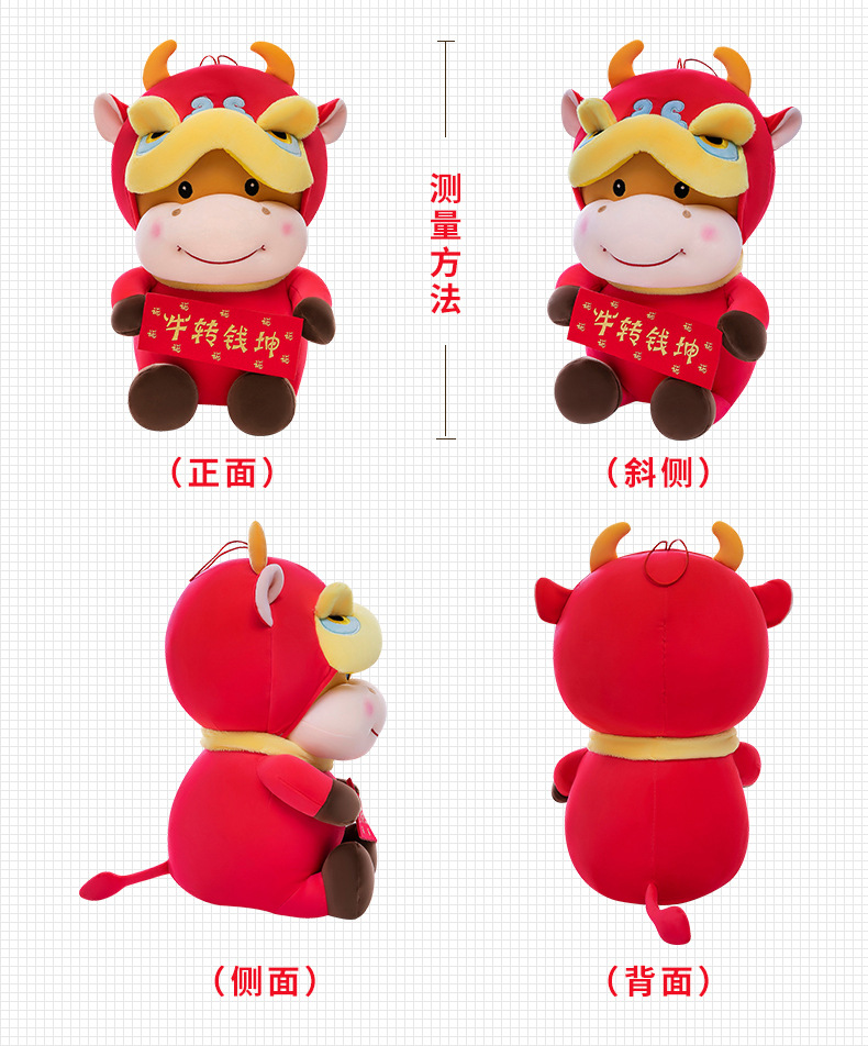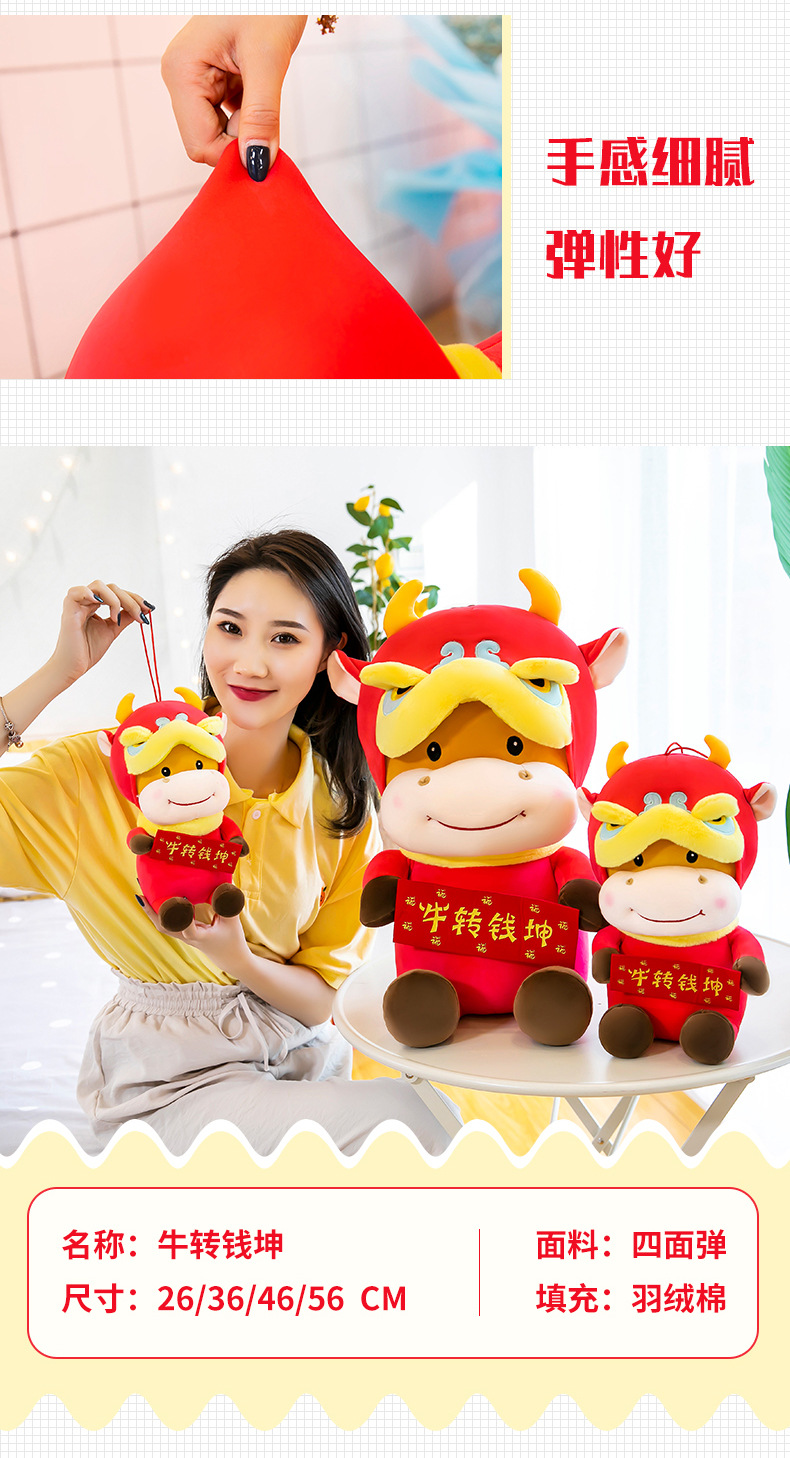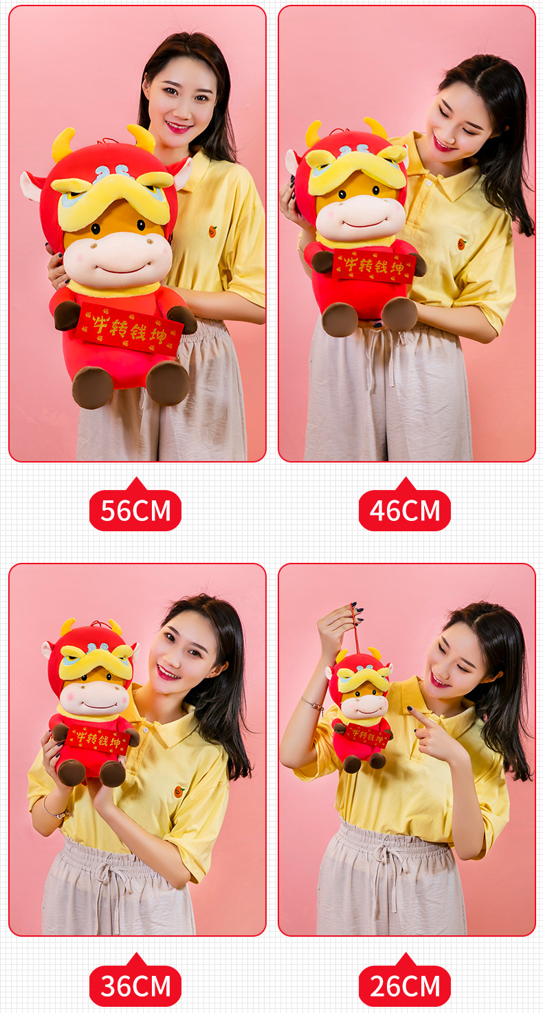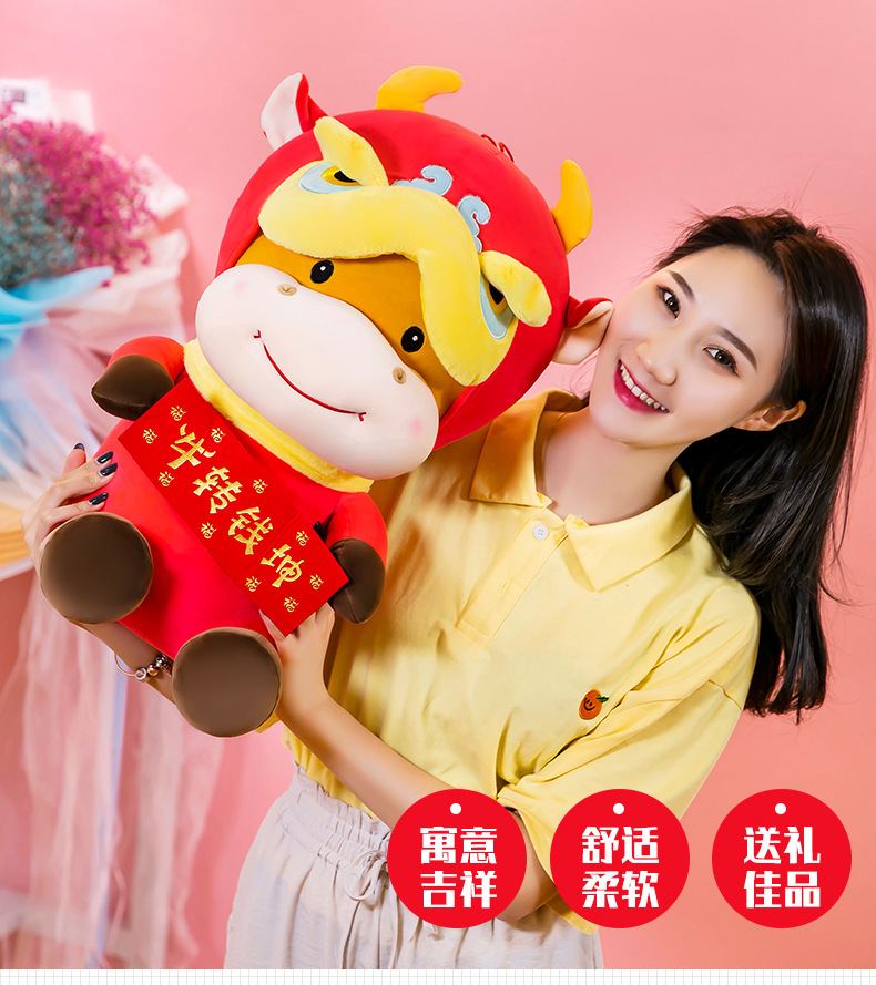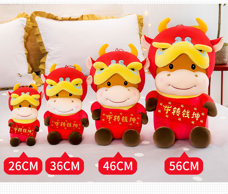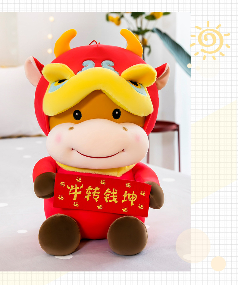 【2021牛年吉祥物可爱舞狮牛生肖牛】毛绒玩具公司年会活动礼品