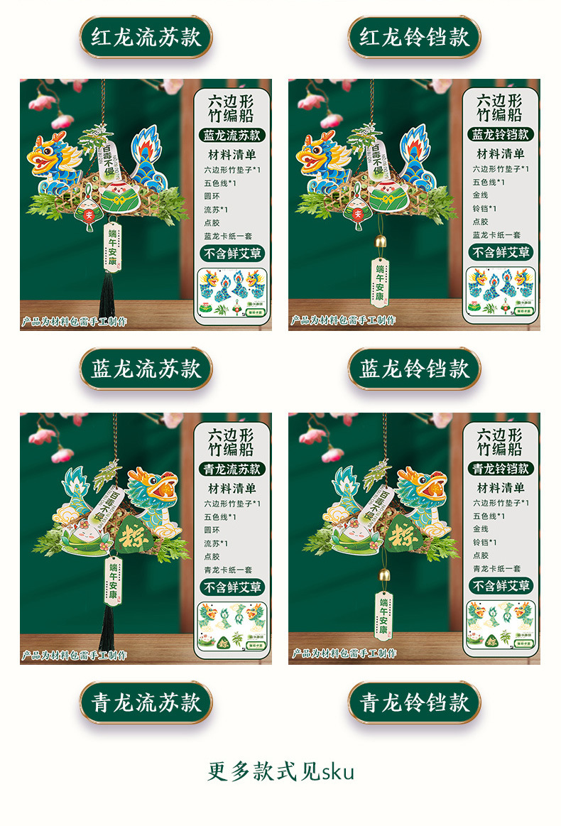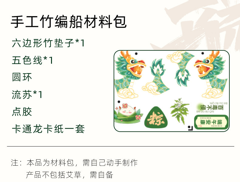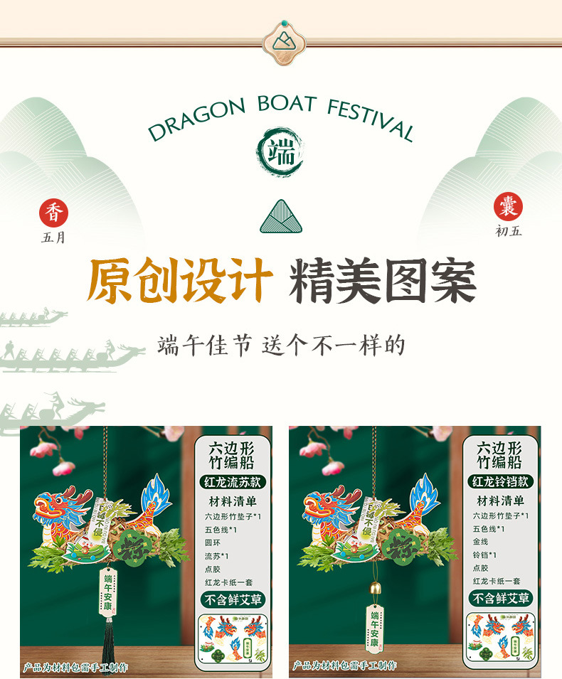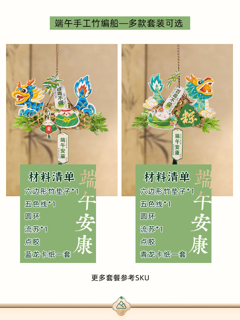【13.9秒杀❗端午艾草挂件】高颜值挂件,手工diy竹编龙舟船艾草,非遗民俗挂件儿童亲子活动团建礼物QQ