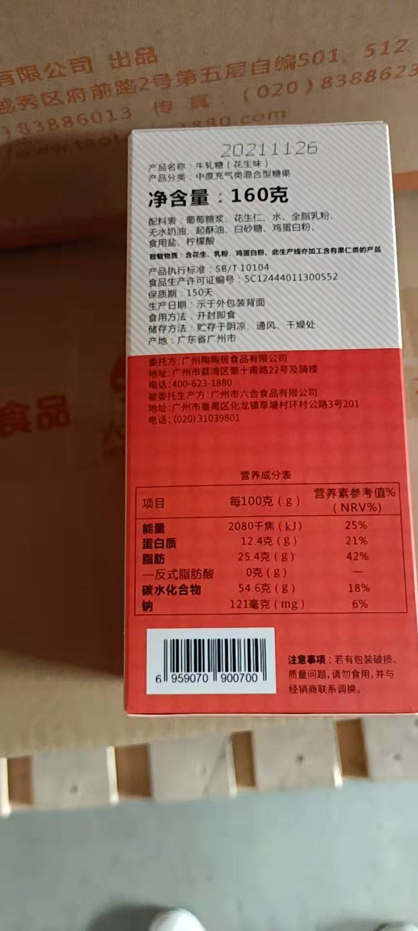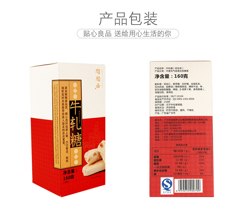 【新春年货】陶陶居牛轧糖花生味160g,传统工艺制作的花生牛轧糖香甜不腻春节送礼自享两相宜