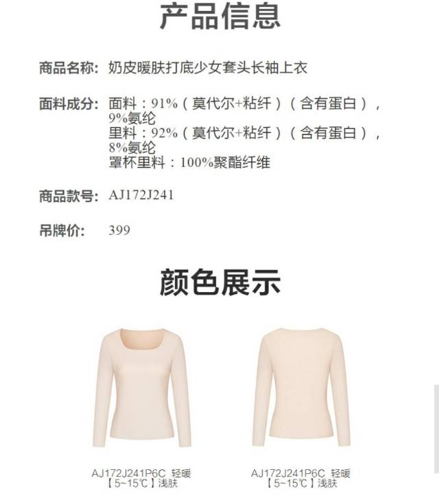 【春上新】8楼爱慕儿童Aimer Kids女孩奶皮暖肤打底套头长袖上衣AJ172J241,吊牌价399元