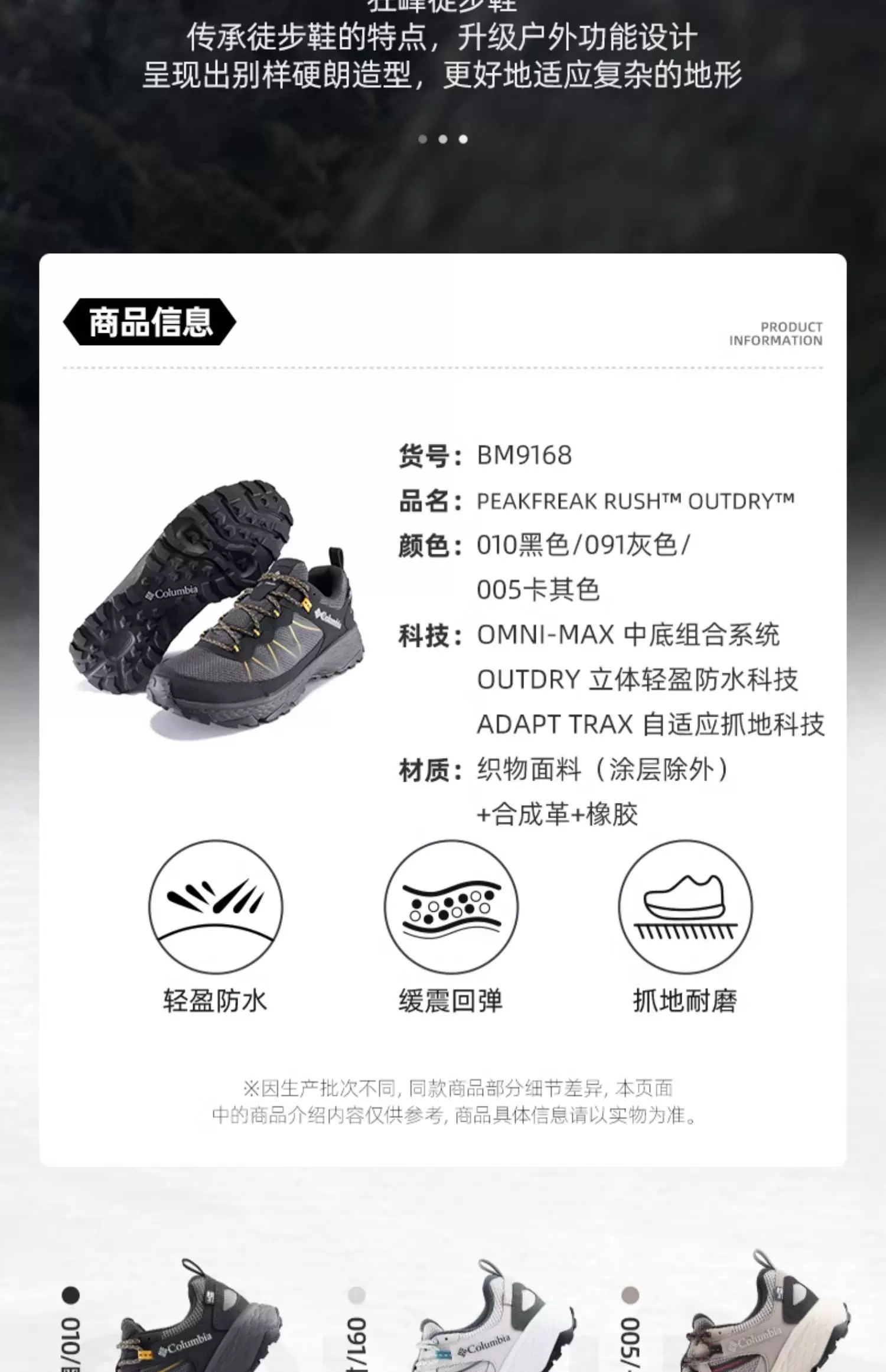 【云粉节】【徒步鞋】6楼哥伦比亚男鞋户外立体防水缓震防滑登山徒步鞋BM9168