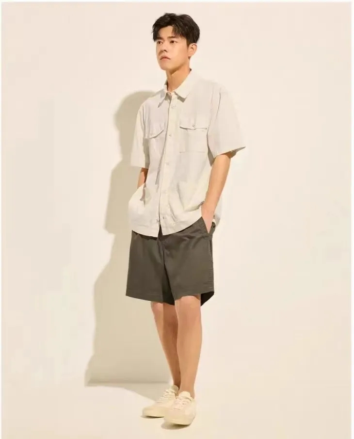 【zm1】夏新款男子简约宽松斜纹抽绳休闲短裤!!