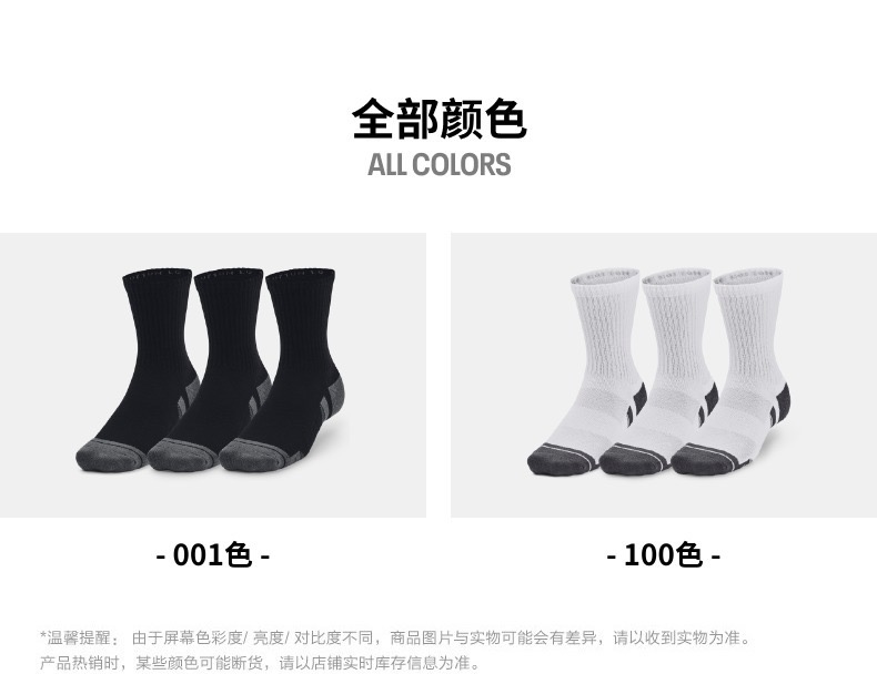 【云粉节】7楼安德玛UA Performance男女情侣棉质运动半腿袜-3双装1379530 吊牌价149元
