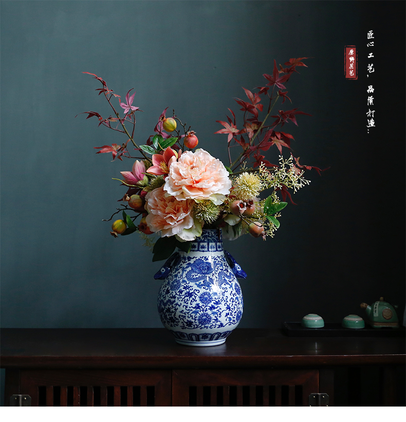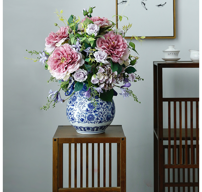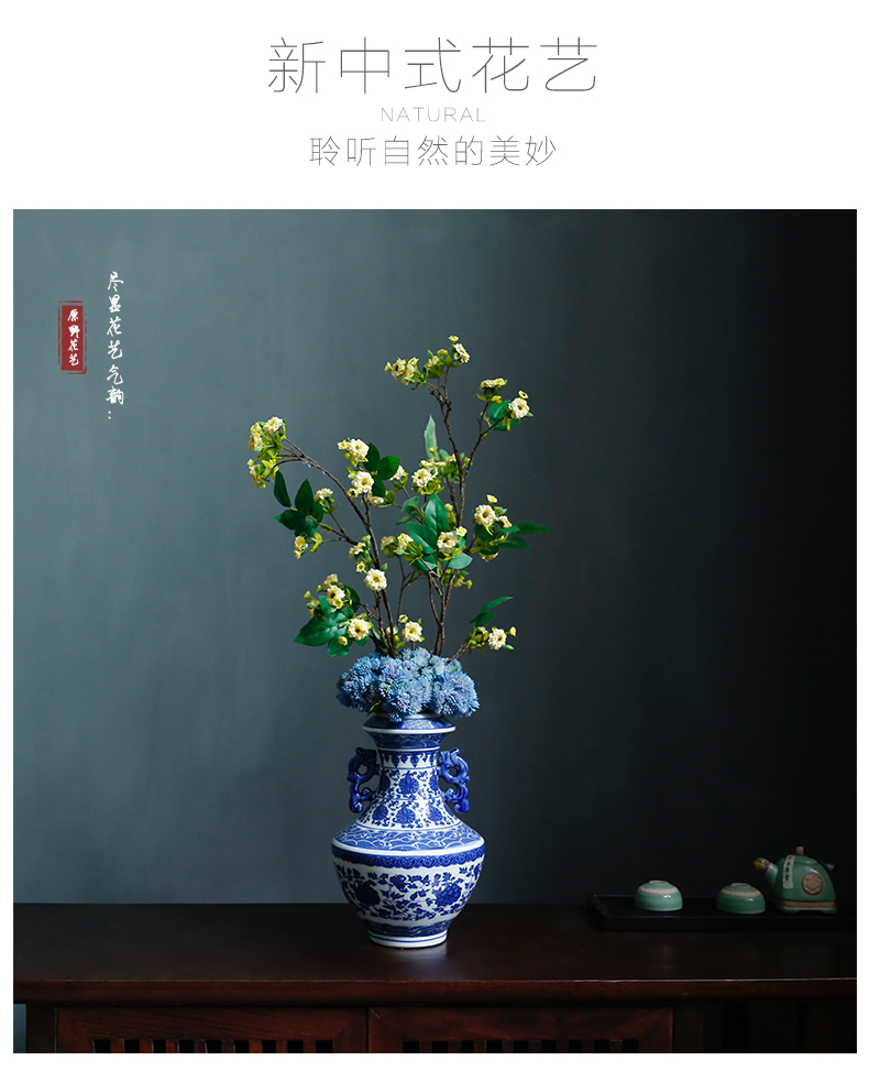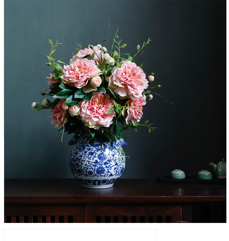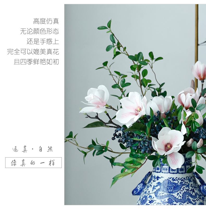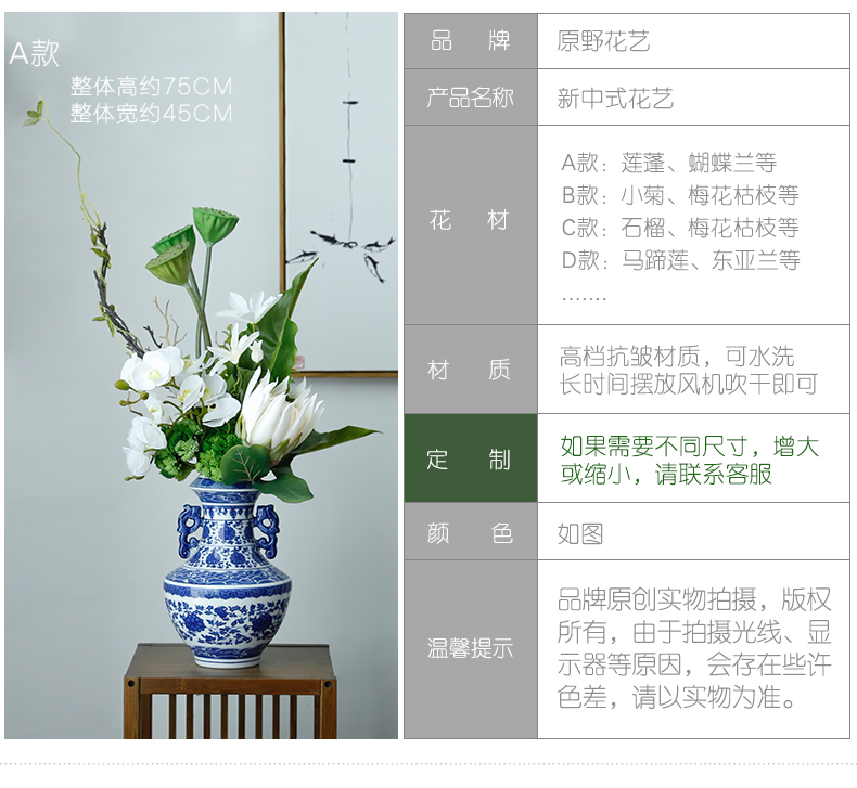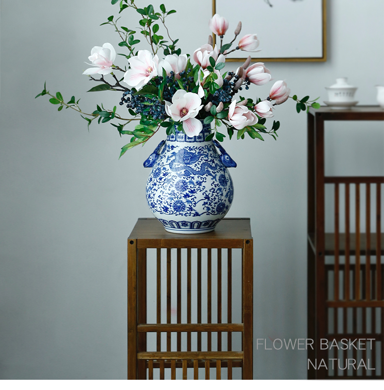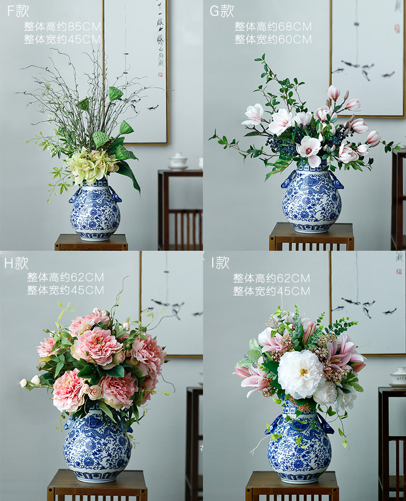 新中式高档仿真花假花青花瓷样板房酒店前台客厅玄关装饰花摆设件