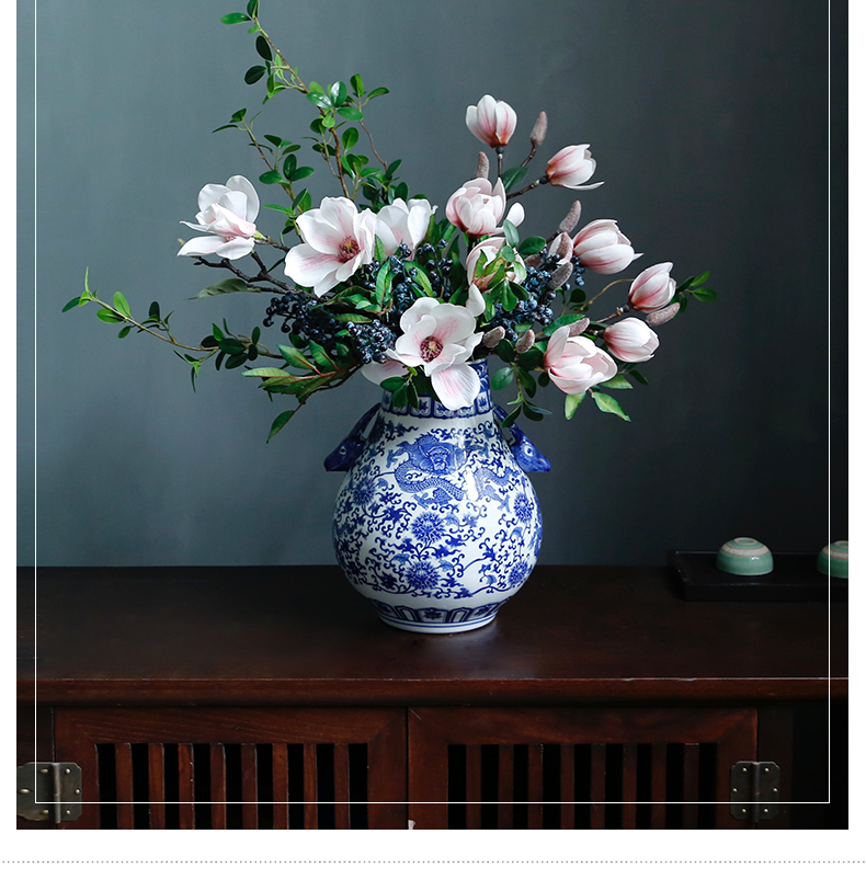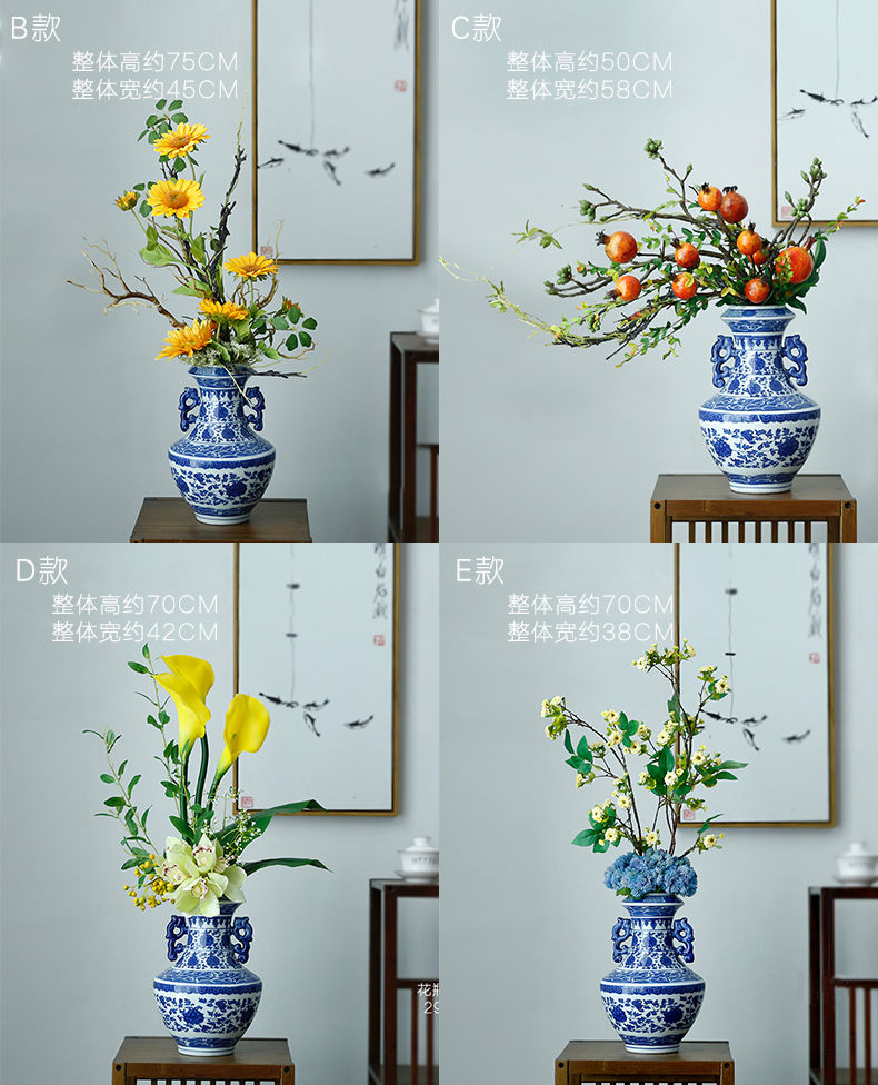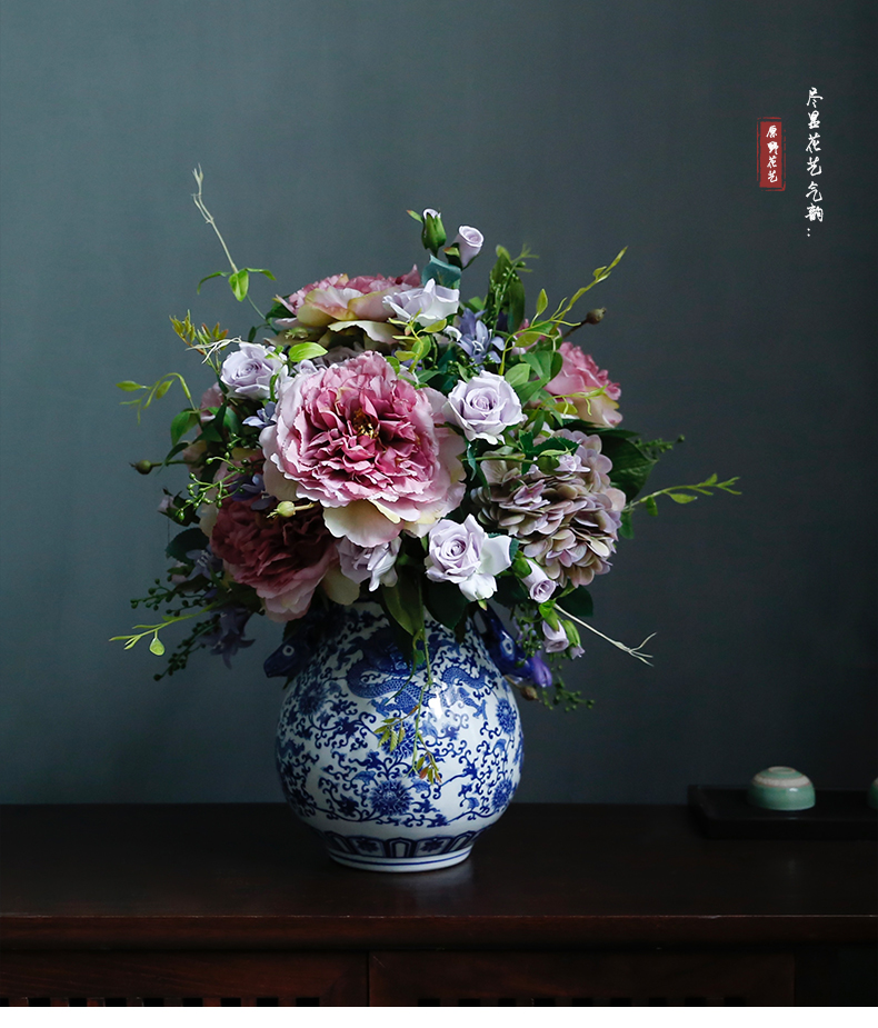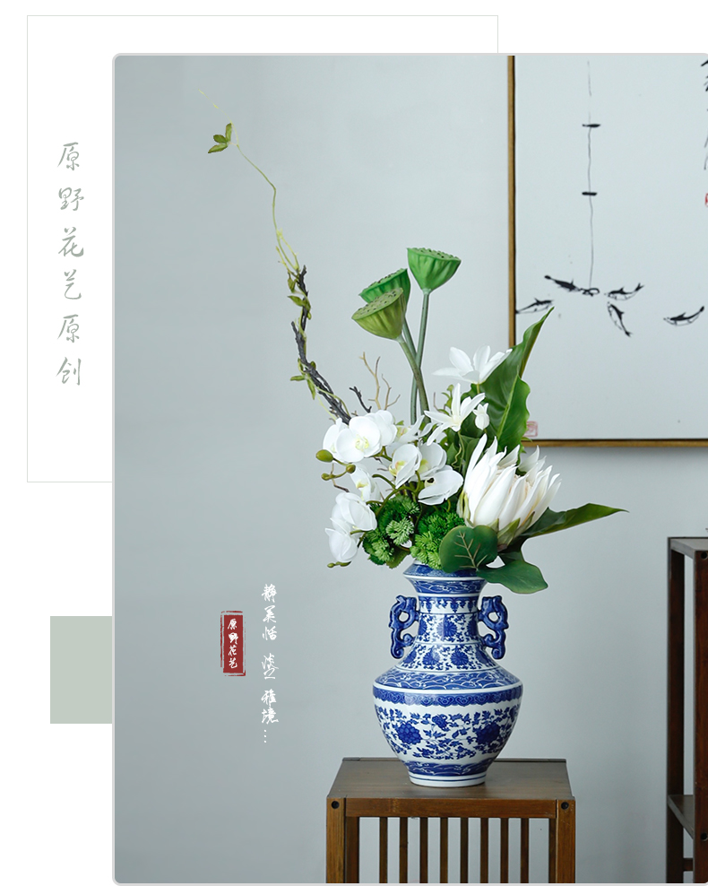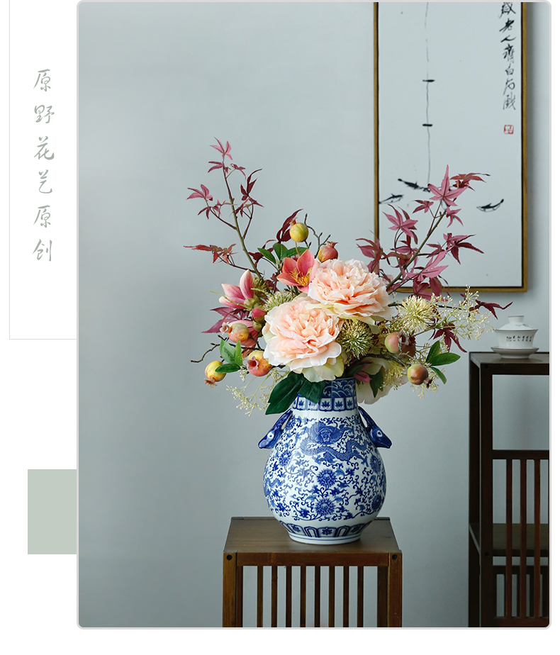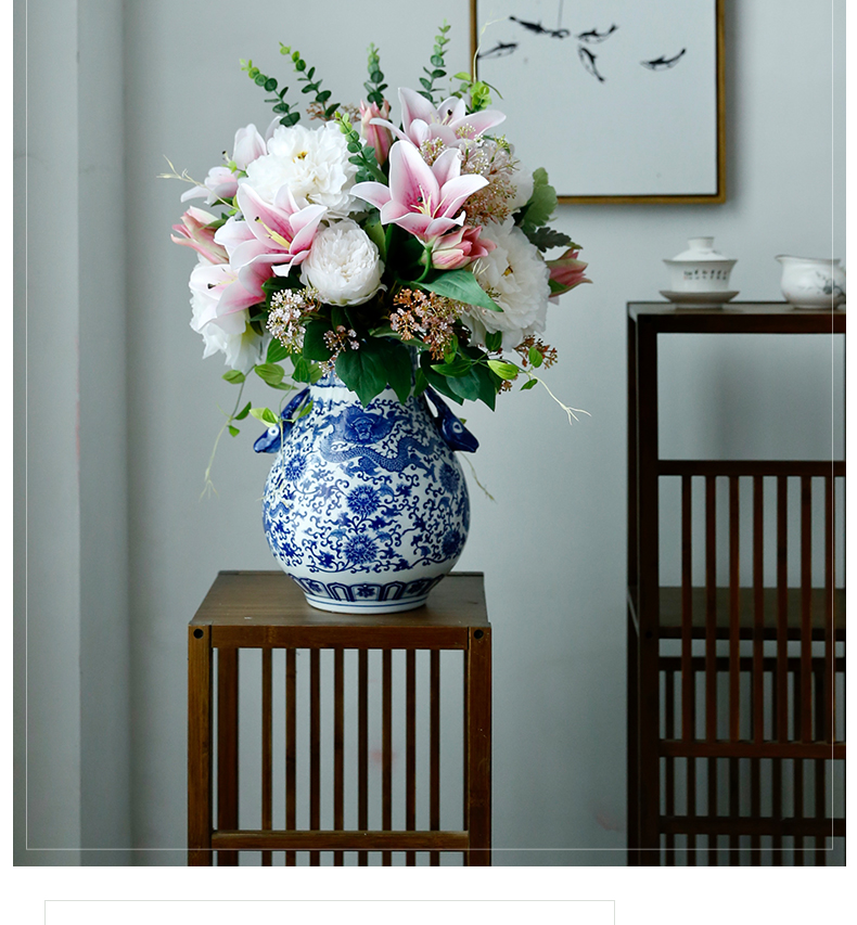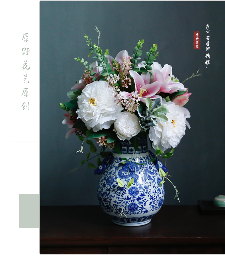 新中式高档仿真花假花青花瓷样板房酒店前台客厅玄关装饰花摆设件