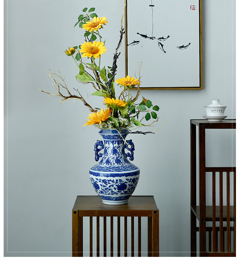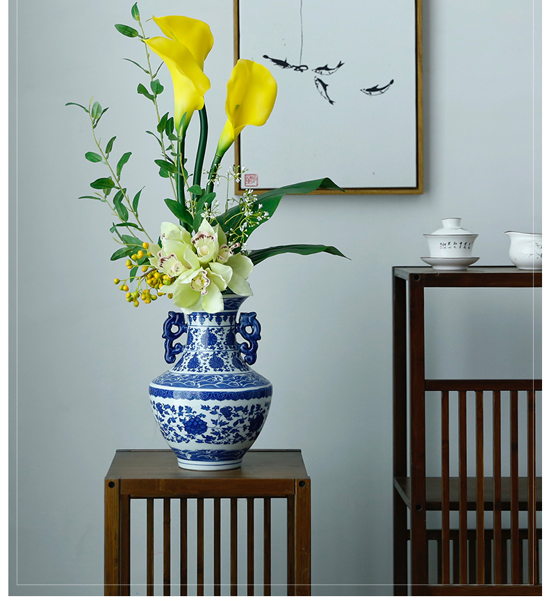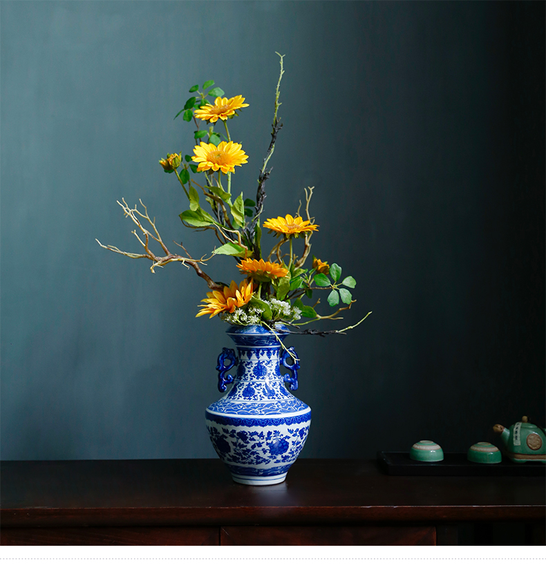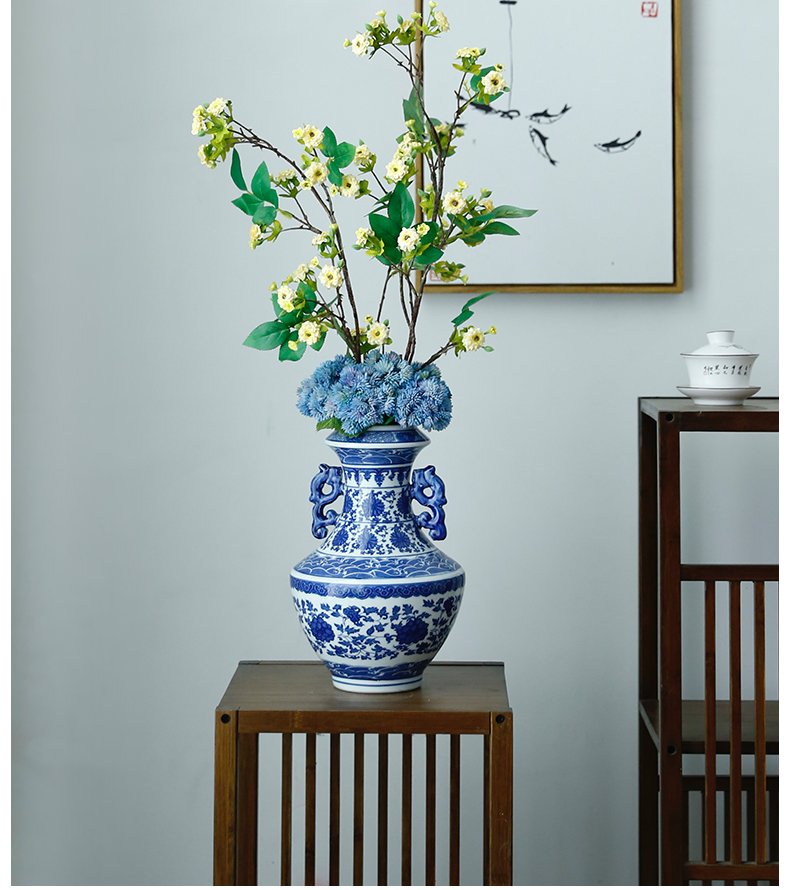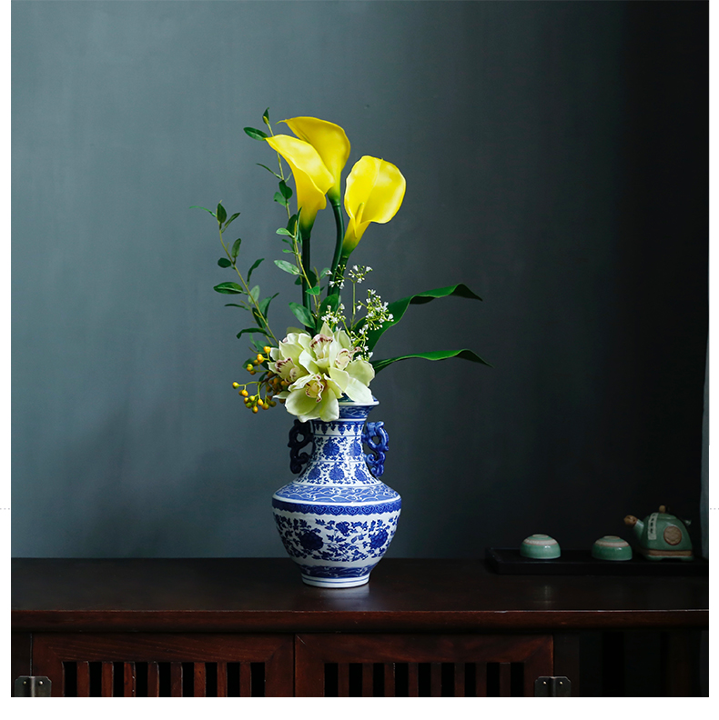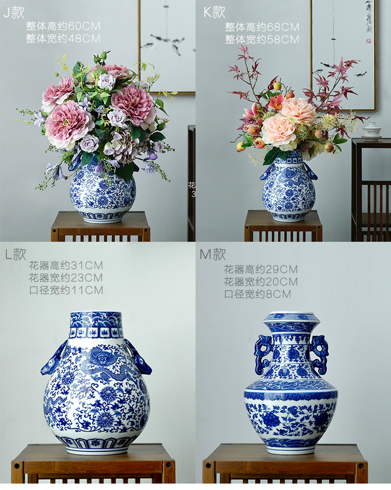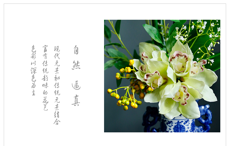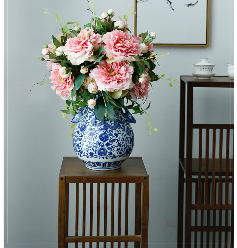 新中式高档仿真花假花青花瓷样板房酒店前台客厅玄关装饰花摆设件