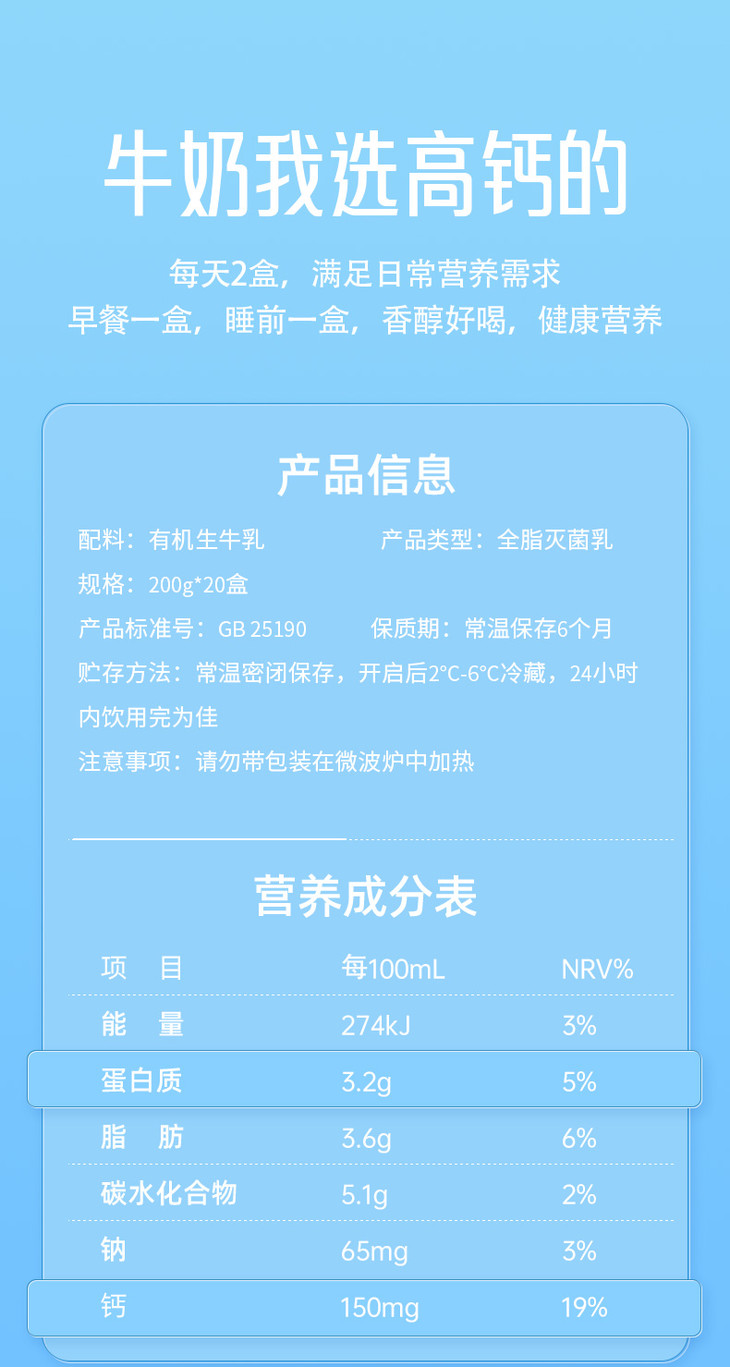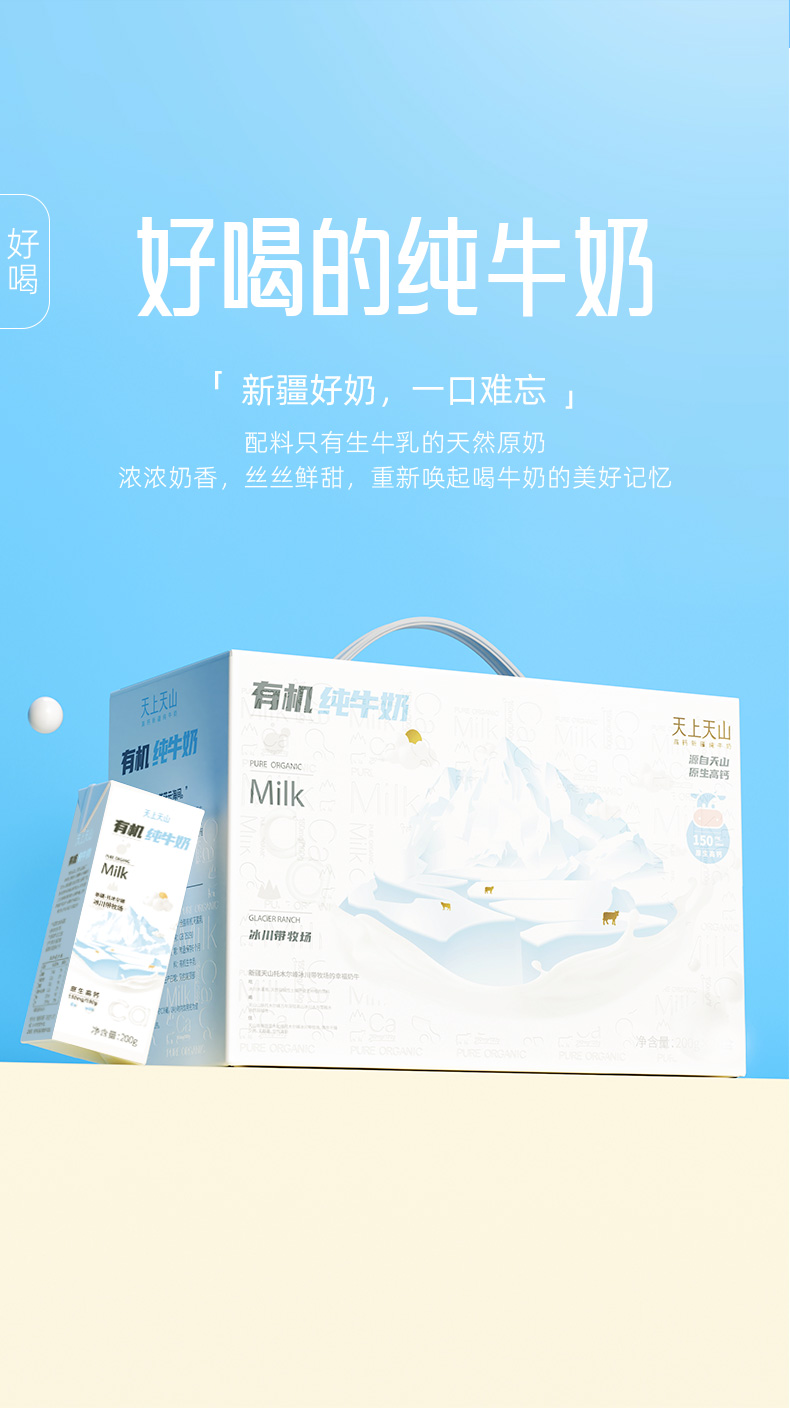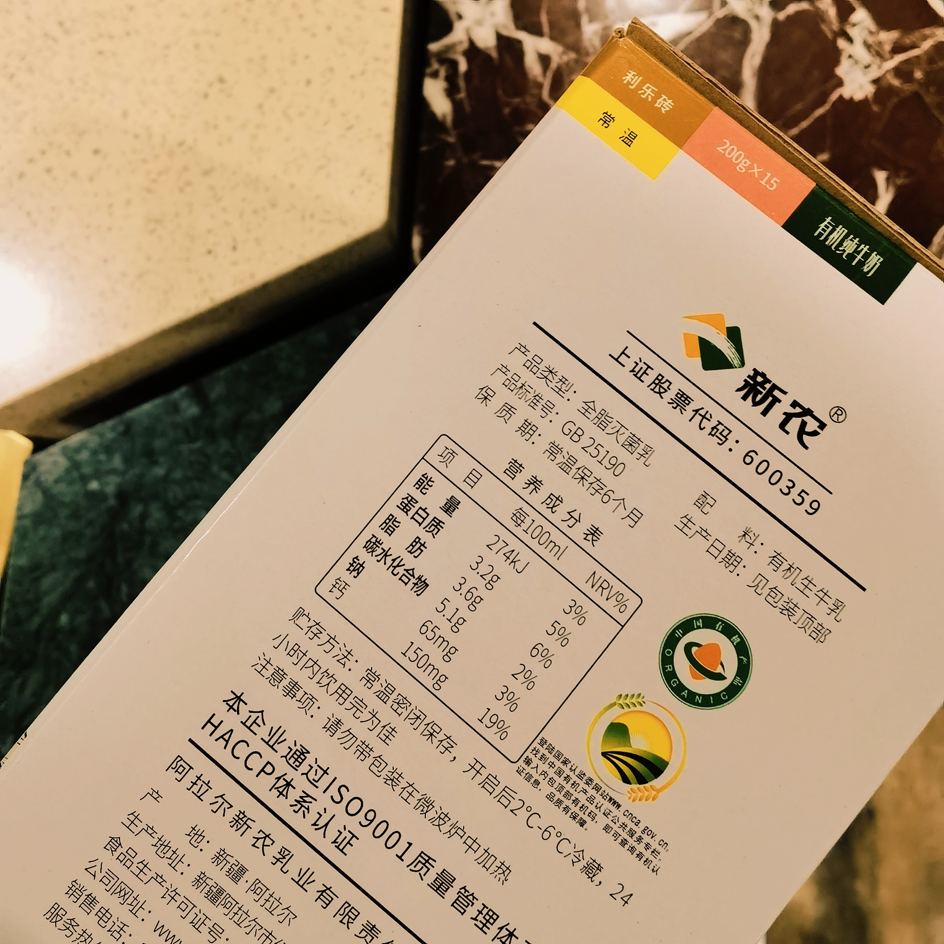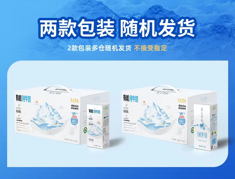 [屁侠推荐]新农 天上天山新疆冰川 有机纯牛奶200g×20盒×2