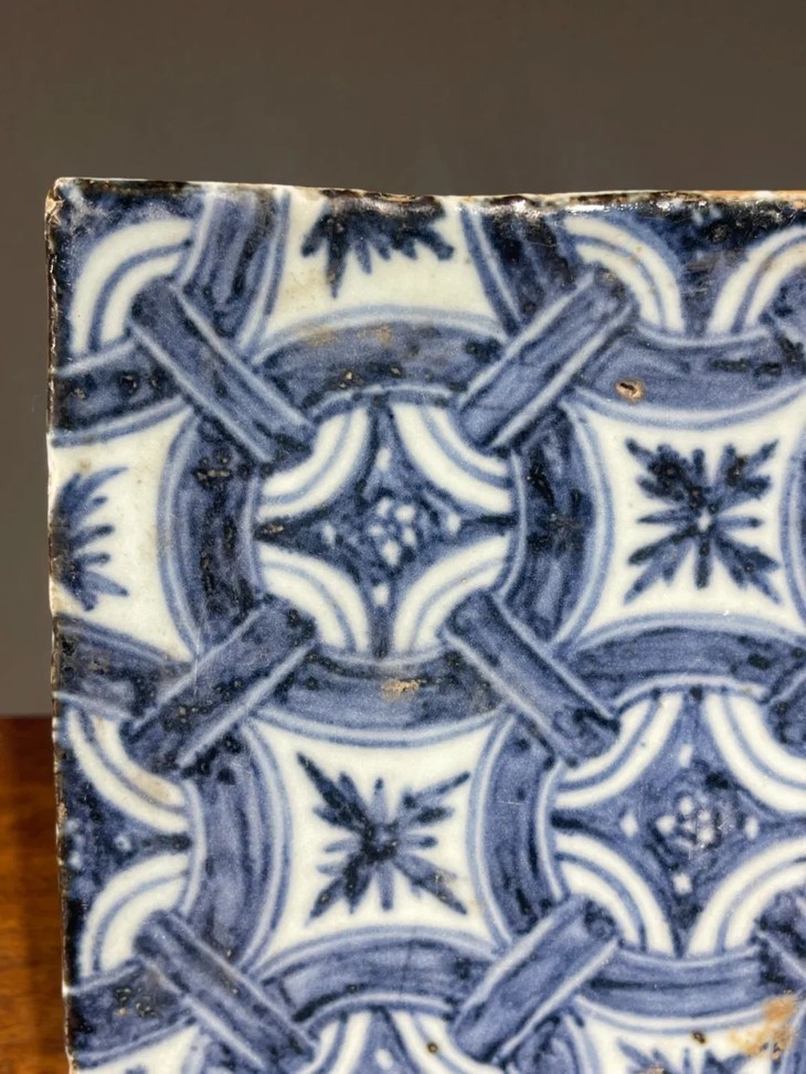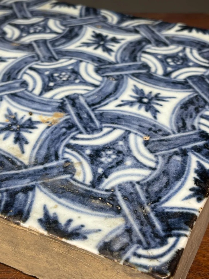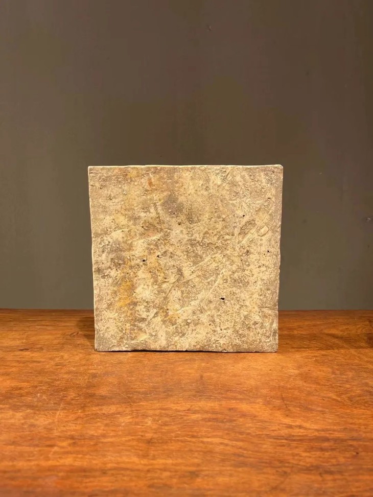 如图所示,此青花瓷砖除釉面小爆釉孔,以及边沿小磕碰伤外,保存基本完好,具备早明青花瓷器的优雅气质,可置于书桌上摆设或加木框悬挂,风格典雅高贵。