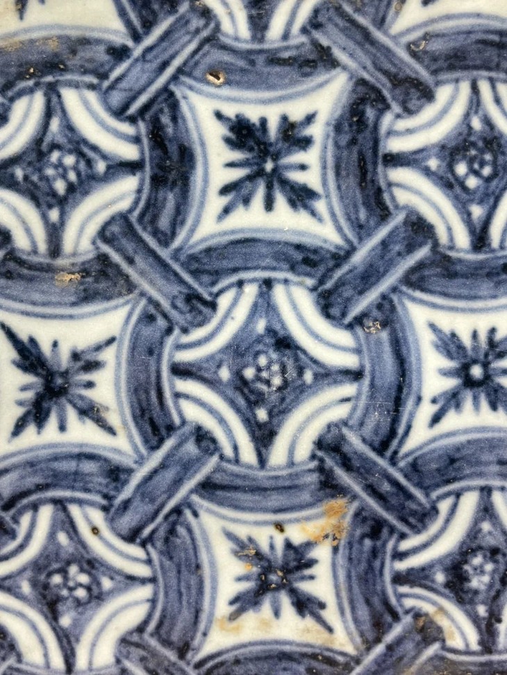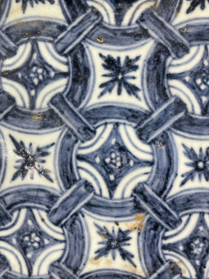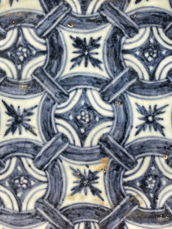 青花绘连环绳结纹瓷板地砖