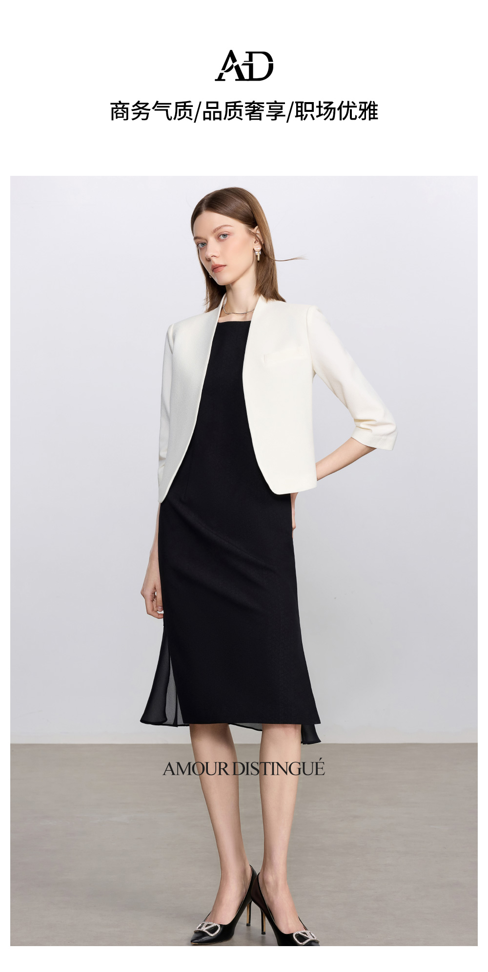 AD简约米白色无领西装外套女新款一粒扣职业装套装经理律师工作服