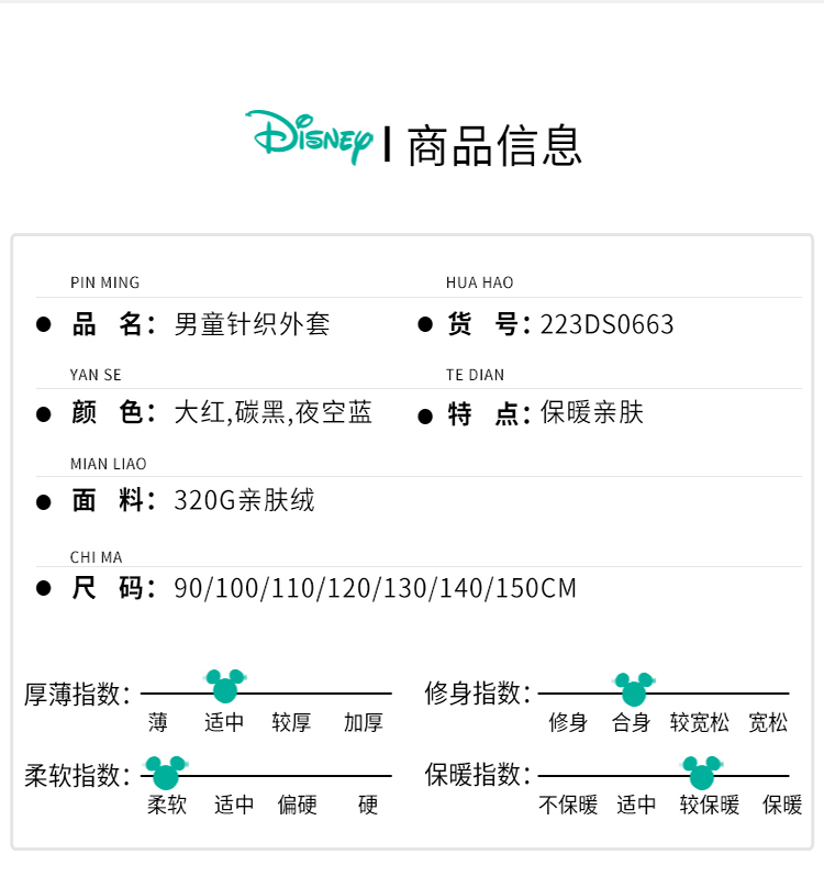 【商场同款】迪士尼秋季男童加绒前开外套223DS0663
