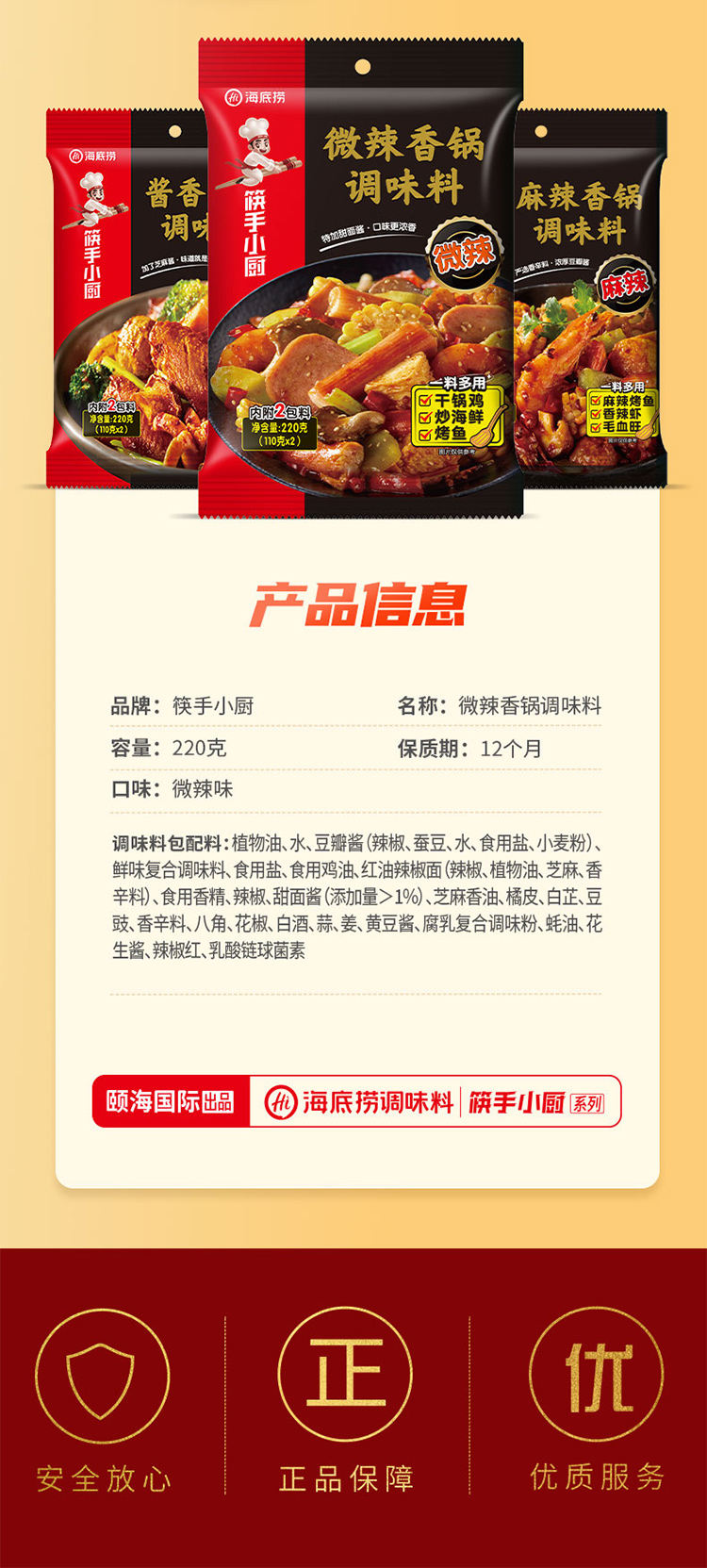 - 海底捞调味料旗舰店,海底捞系列的火锅底料、火锅蘸料、自煮火锅、调味料、即食酱、休闲零食等产品。满足你随时随地吃火锅的需求,一秒变大厨的想法。快来,给美食找点乐子,让吃饭变乐事吧!
