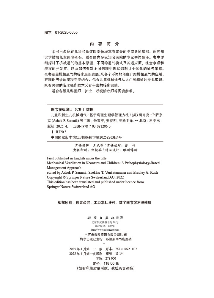 书名:儿童和新生儿机械通气:基于病理生理学管理方法