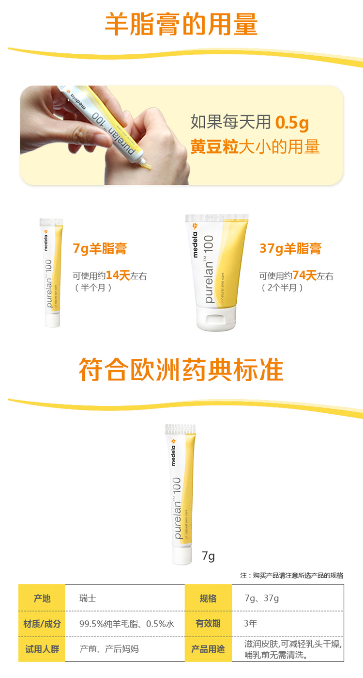 【一般贸易】瑞士进口美德乐Medela纯羊脂膏 37g/7g 乳头霜龟裂膏护乳