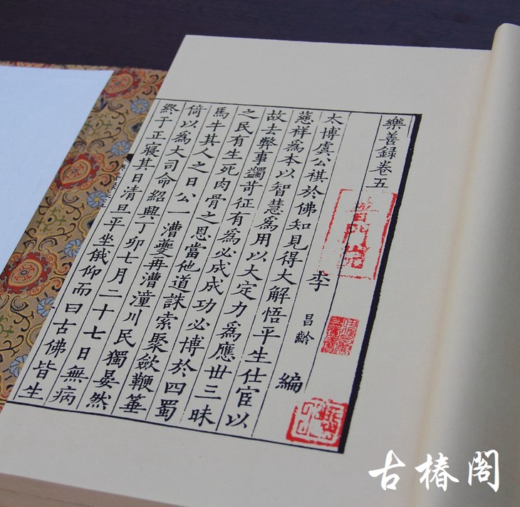 王勃《滕王阁序》有“四美具,二难并”之说,意即“良辰,美景,赏心,乐事”以及“贤主,嘉宾”。举目线装书林,亦有“四美”和“二难”。刻工精,纸张善,版本好,价格低,是线装书的“四美”,这函《乐善录》完全符合“四美”的标准:宋刻中的精品;采用库存20多年的古色老宣纸印制;具有极高的研究价