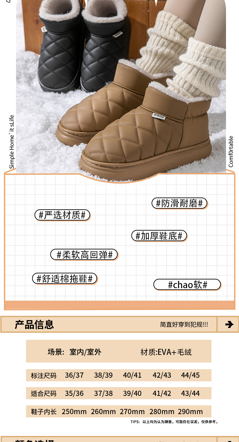 【抗寒 -30℃❗️防水雪地靴】舒适厚底踩云朵的感觉,舒适包跟,PU防水超厚保温超暖,加强防滑底抓地力,外穿防滑加绒增高保暖时尚厚底包跟棉拖鞋QQ