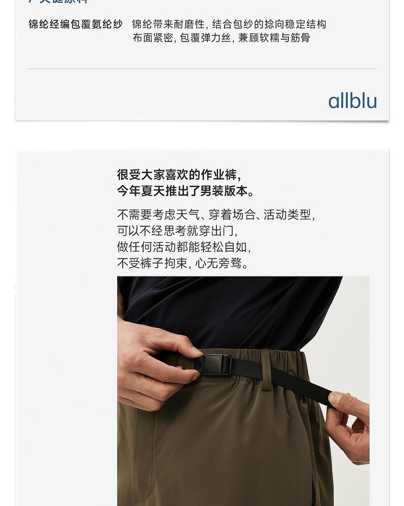 allblu男装“防晒透气还很有型”26春夏【作业裤】男士收脚长裤