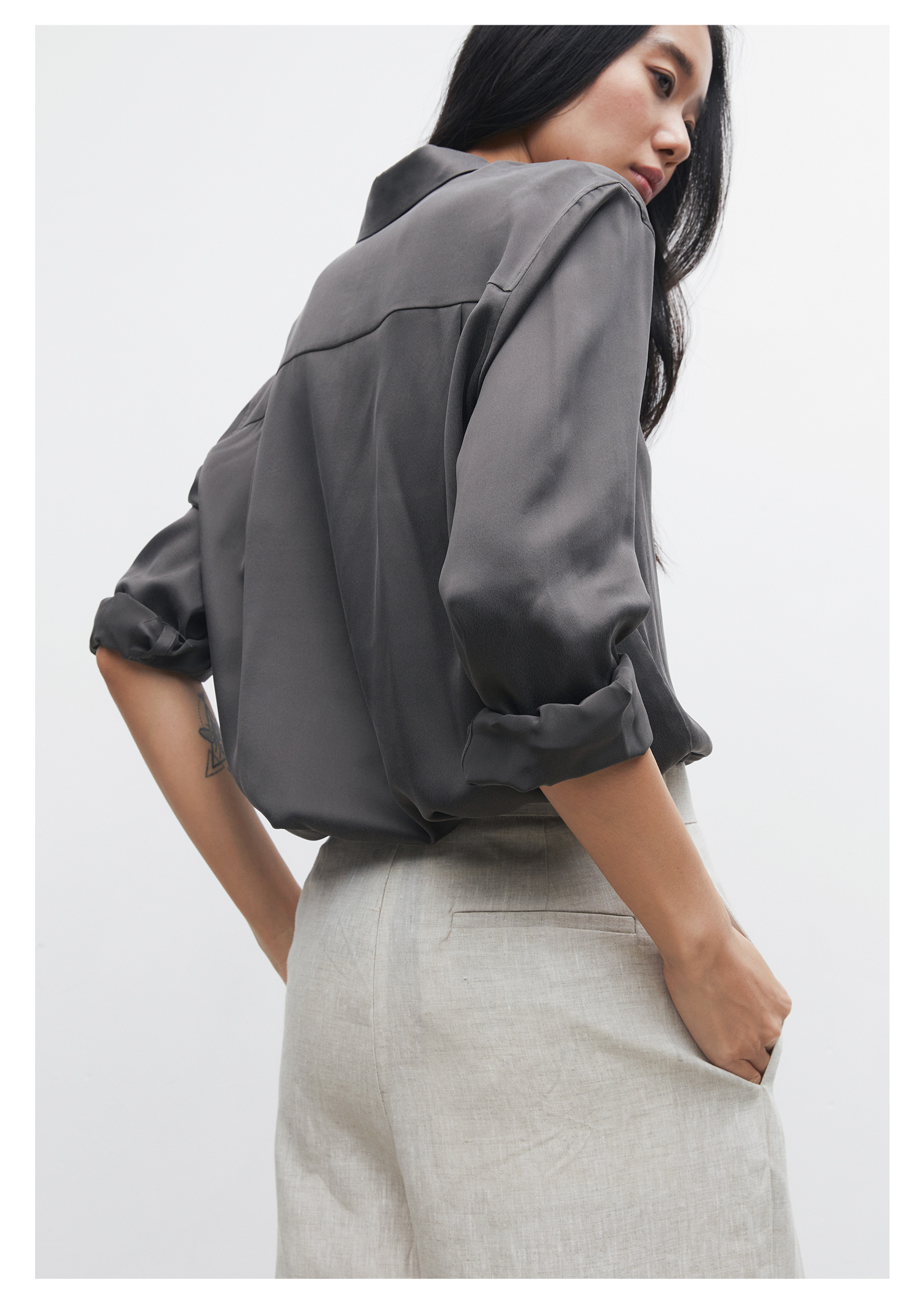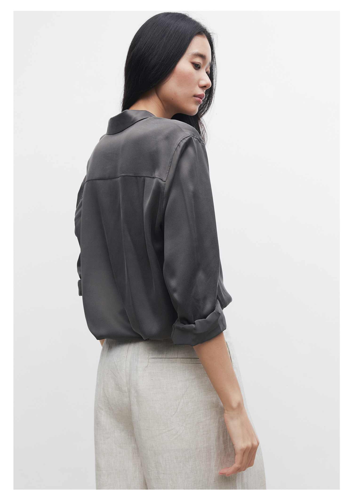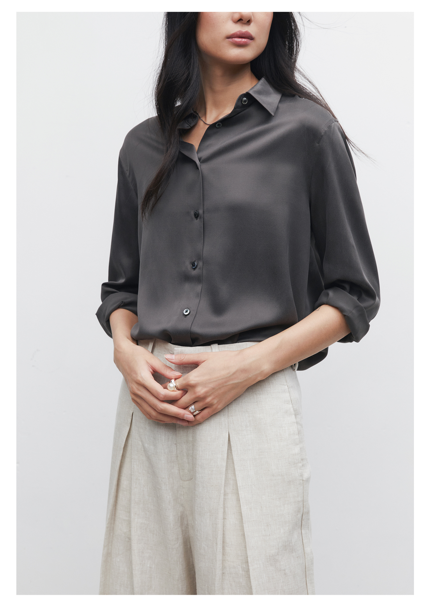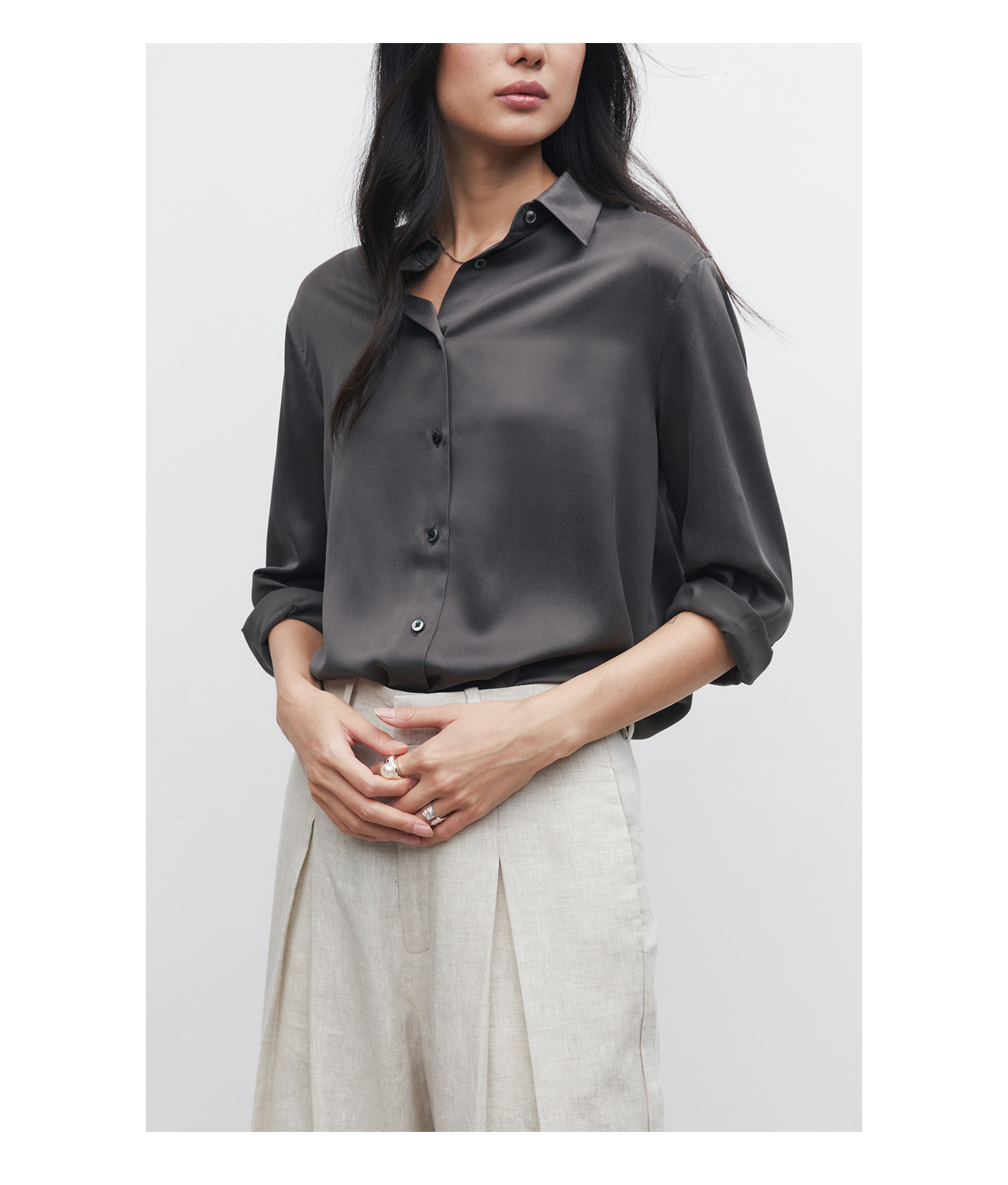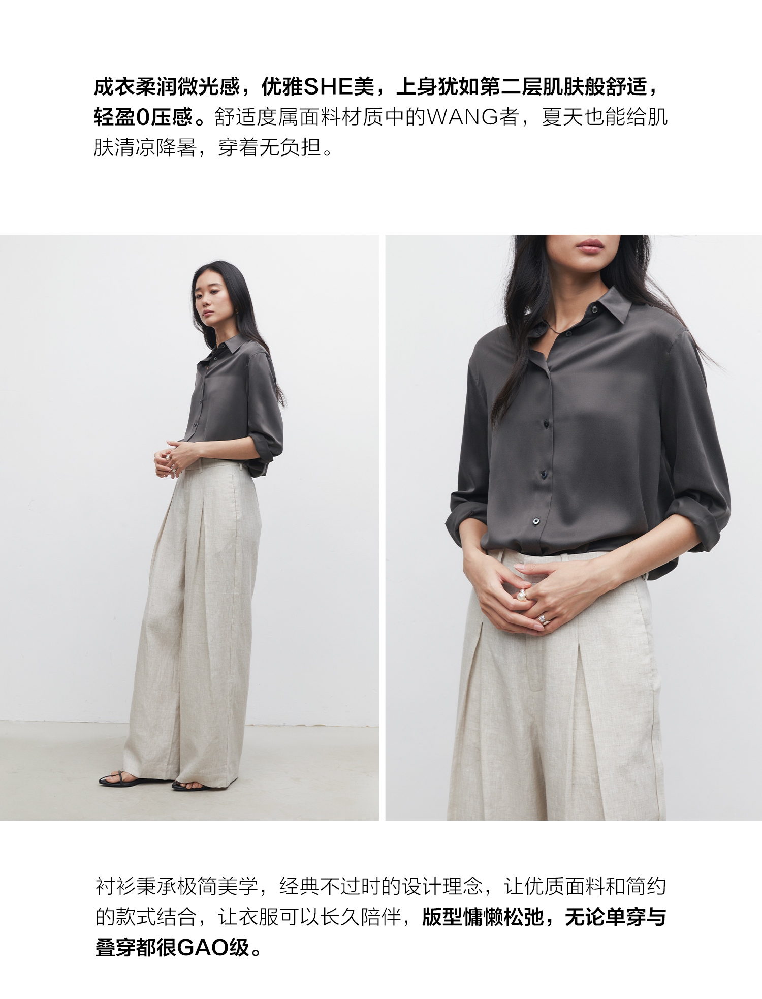 棉仓3531504011-清冷感慵懒风25磨米桑蚕丝衬衫 素绉锻bf风廓形真丝衬衫