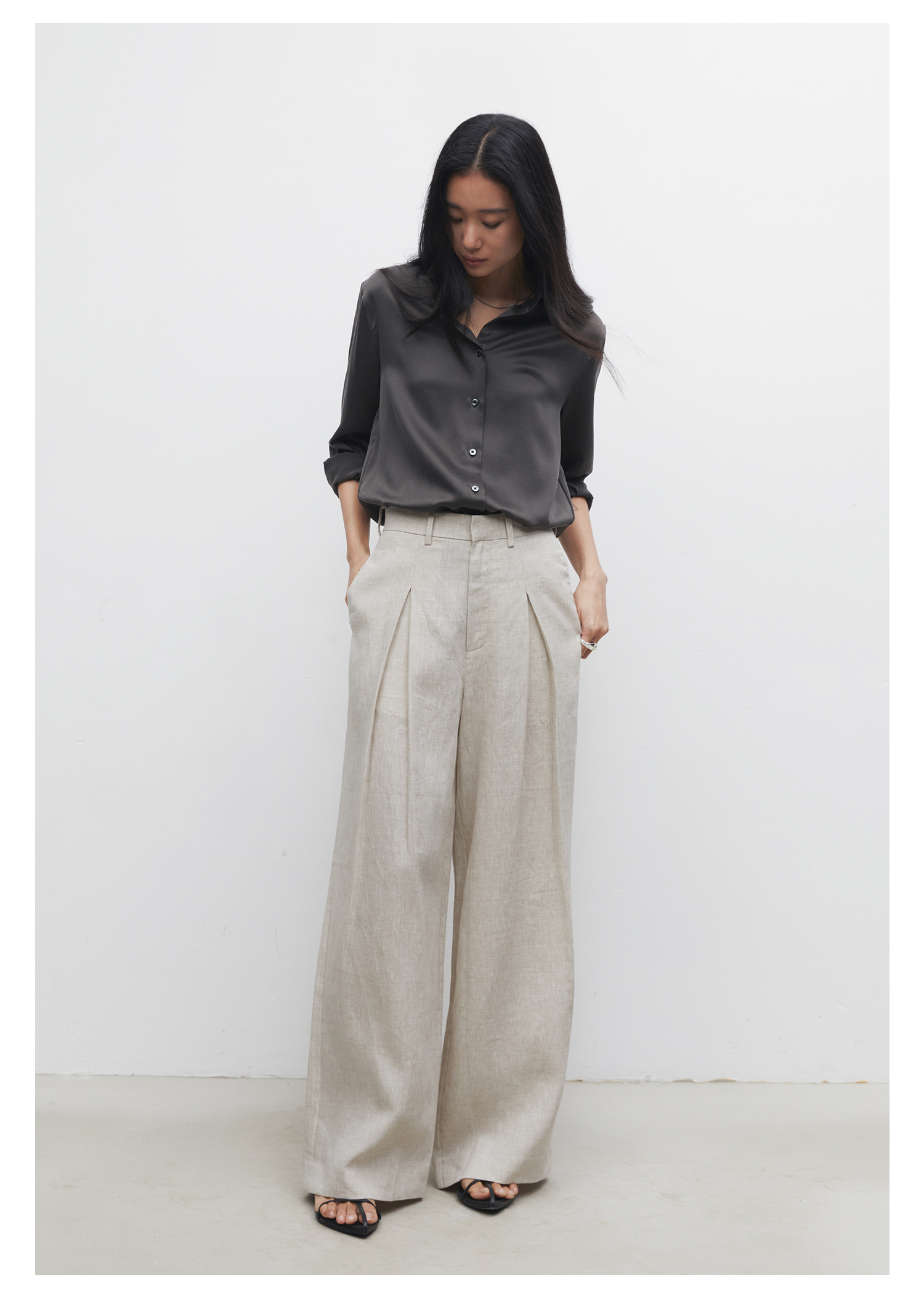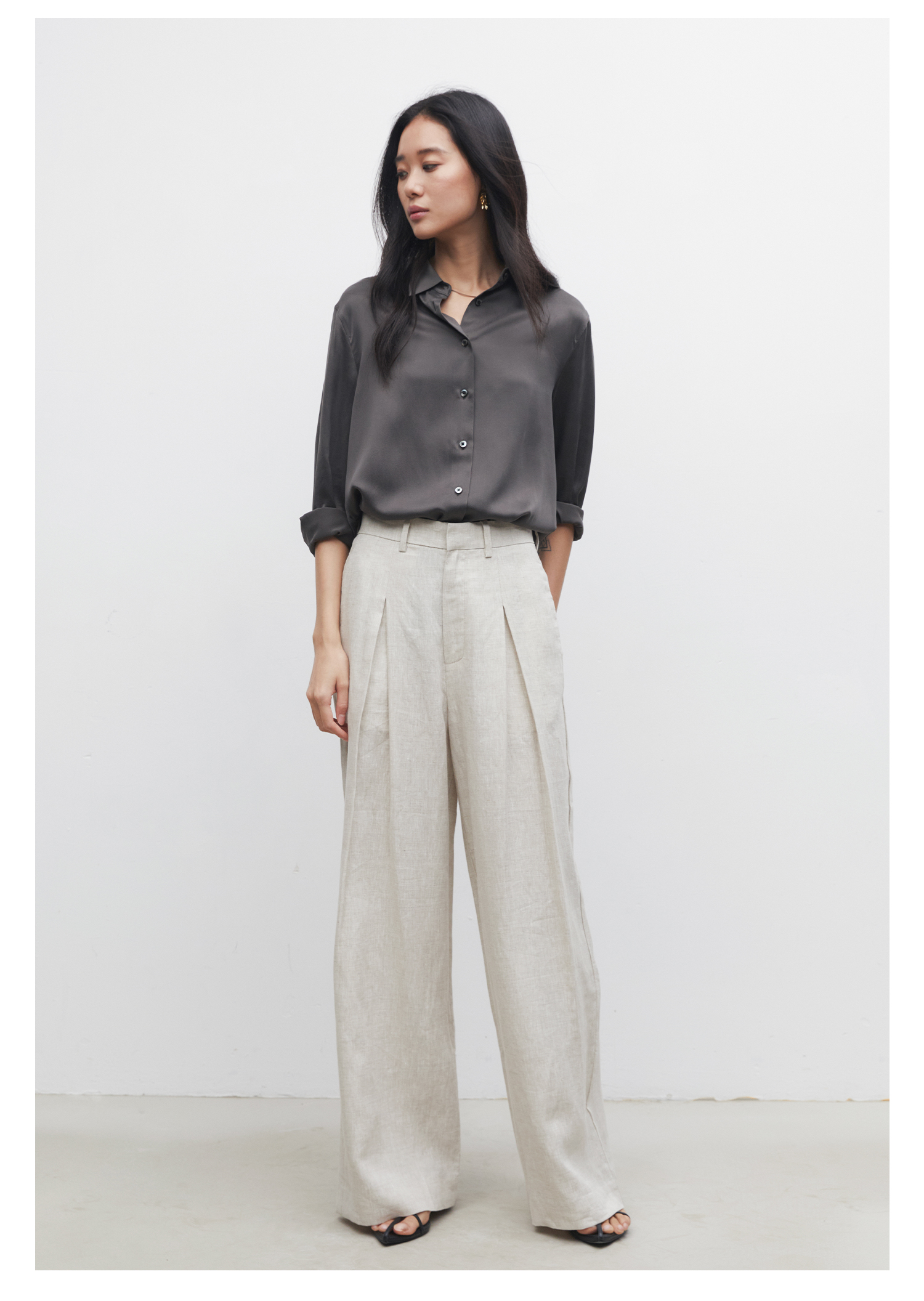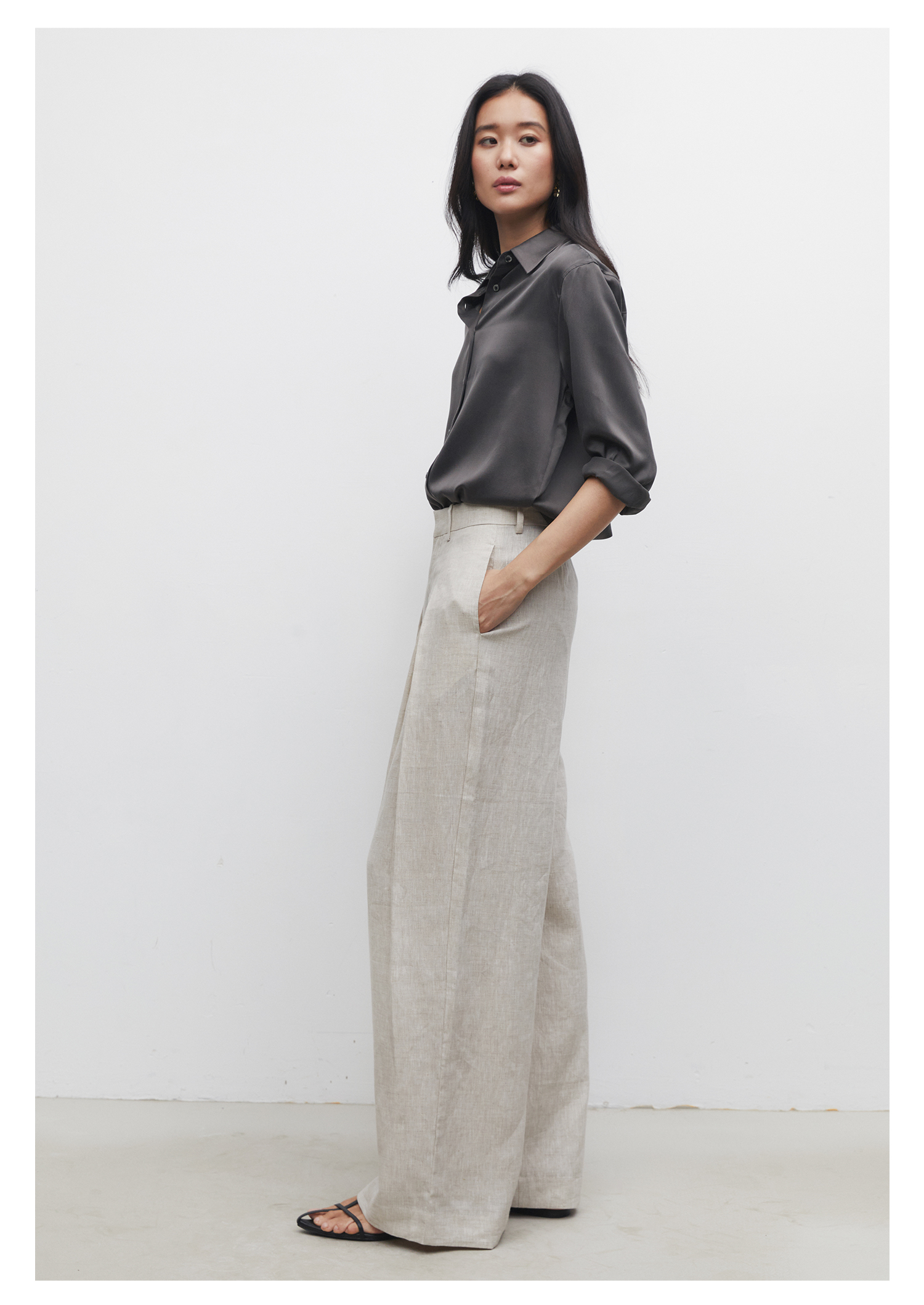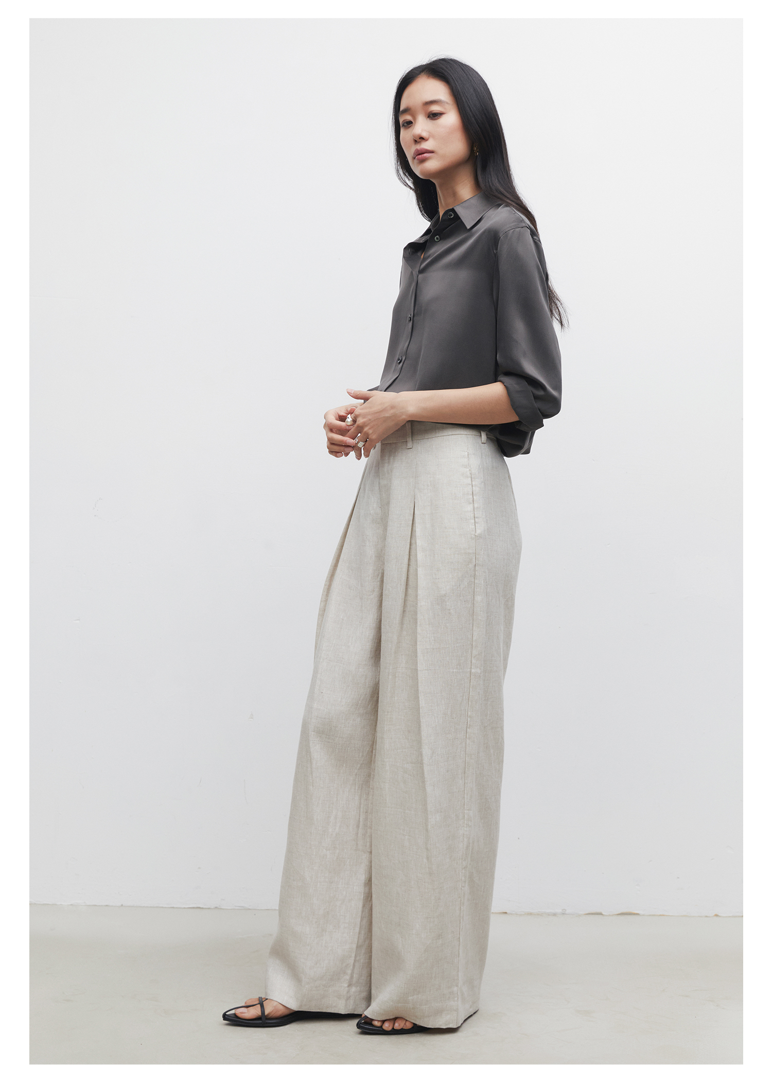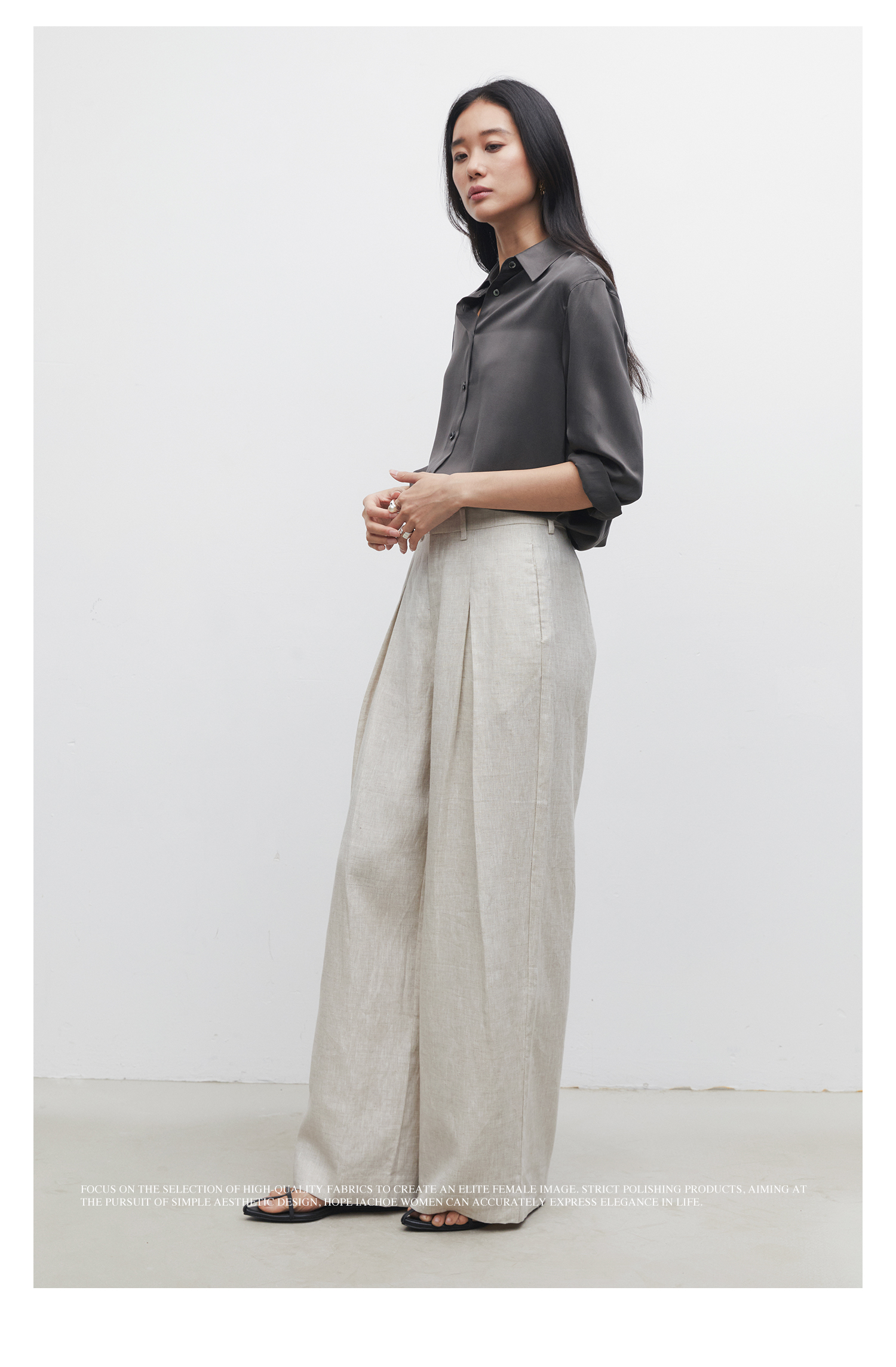 棉仓3531504011-清冷感慵懒风25磨米桑蚕丝衬衫 素绉锻bf风廓形真丝衬衫