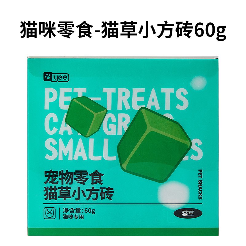 严选【助排毛球猫草小方砖60g】yee猫咪零食生骨肉猫薄荷冻干狗狗爱吃的冻干宠物猫草棒零食