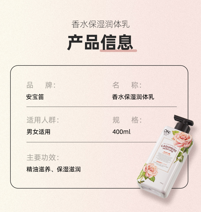【中欧班列精选】韩国安宝笛保湿润体乳 原装进口保湿滋润秋冬补水香味持久身体乳 400ml/瓶WHBX