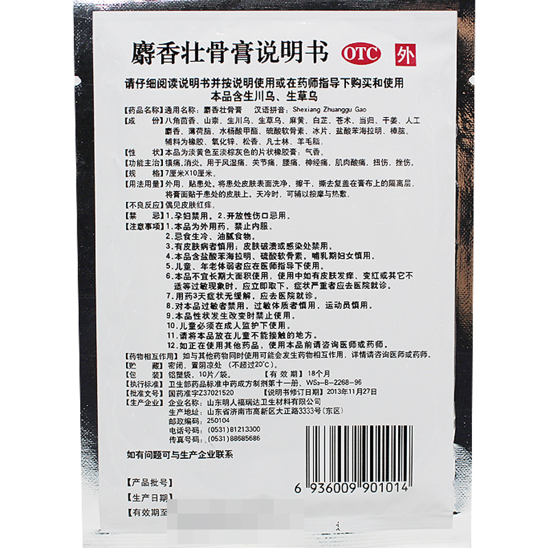 白泉牌 麝香壮骨膏 10片/盒