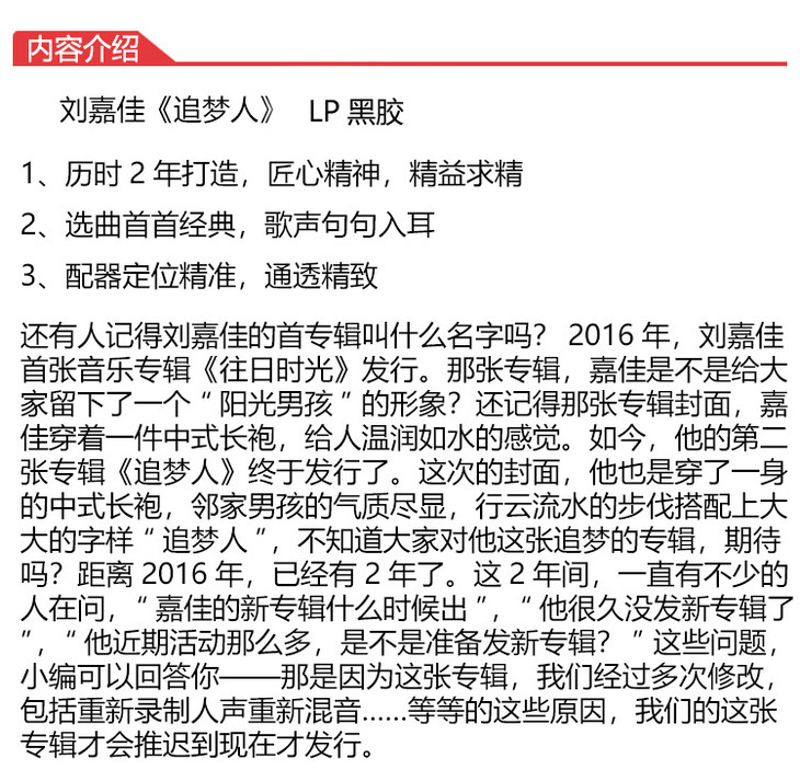 刘嘉佳 追梦人 正版发烧音乐 LPCD 天艺唱片