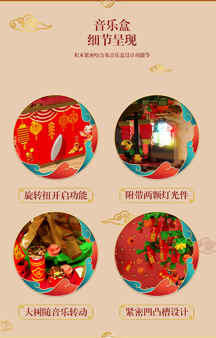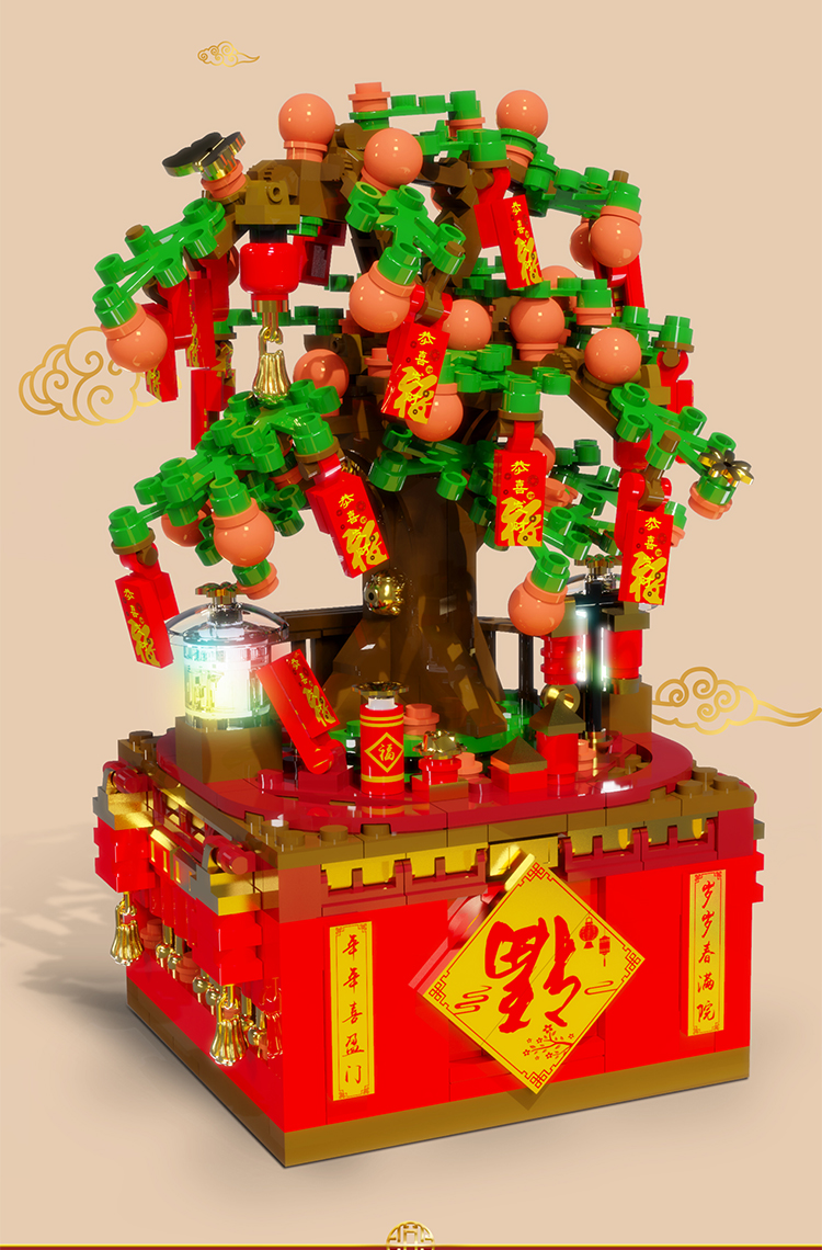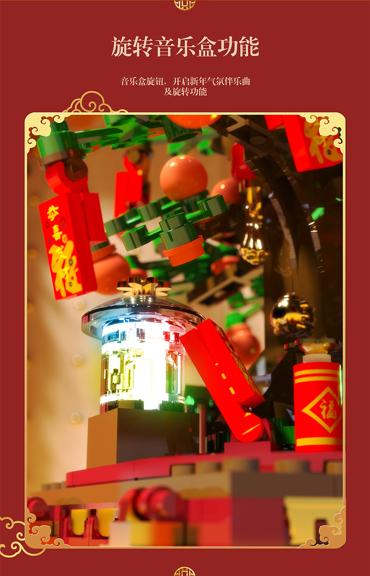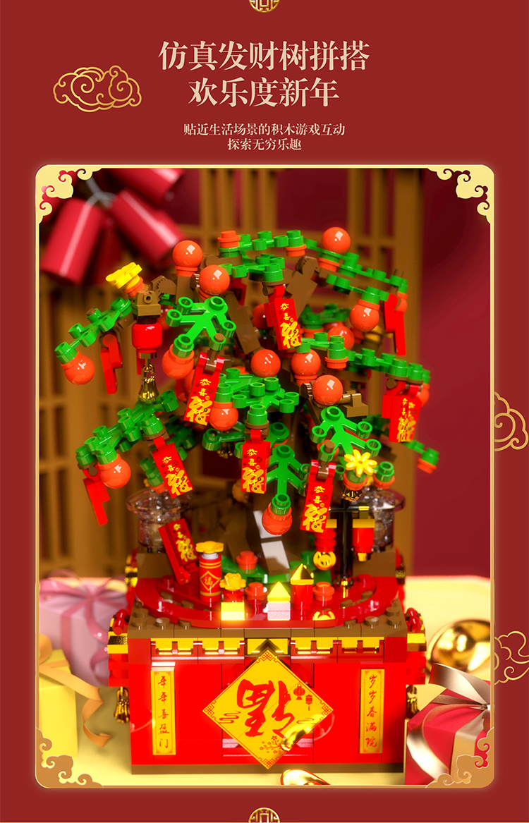 元宵好礼|发财树/舞狮贺岁积木音乐盒 旋转灯光 兼容乐高 节日礼物 送礼必备