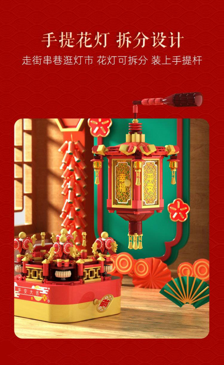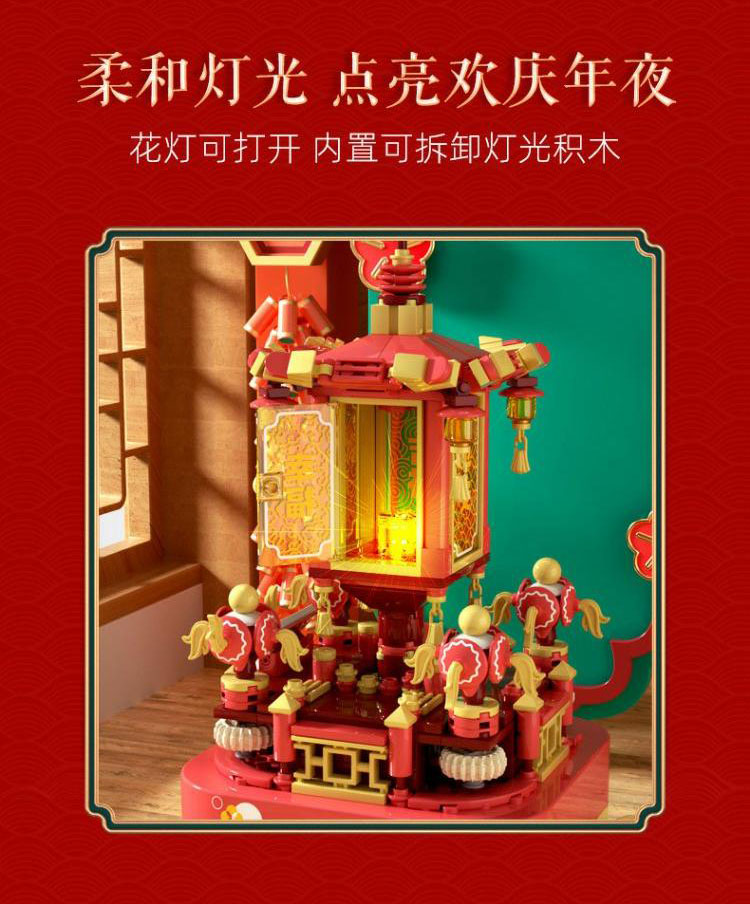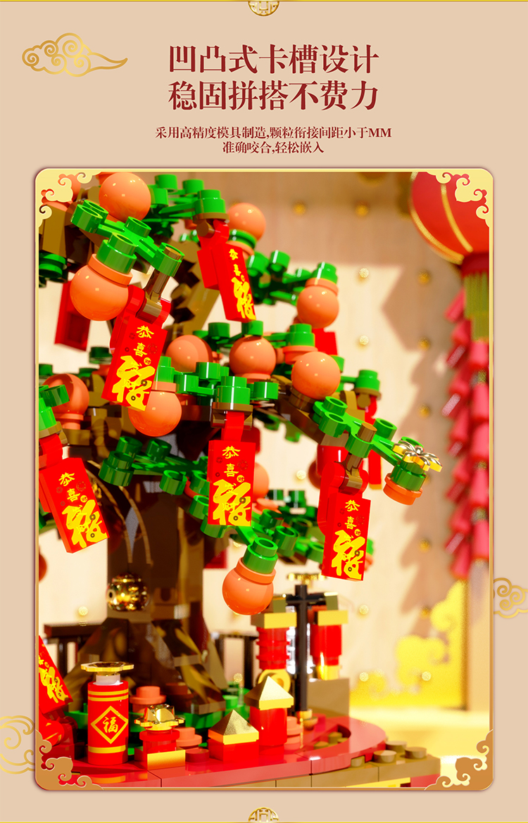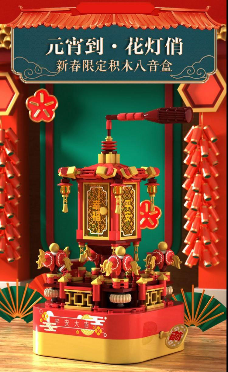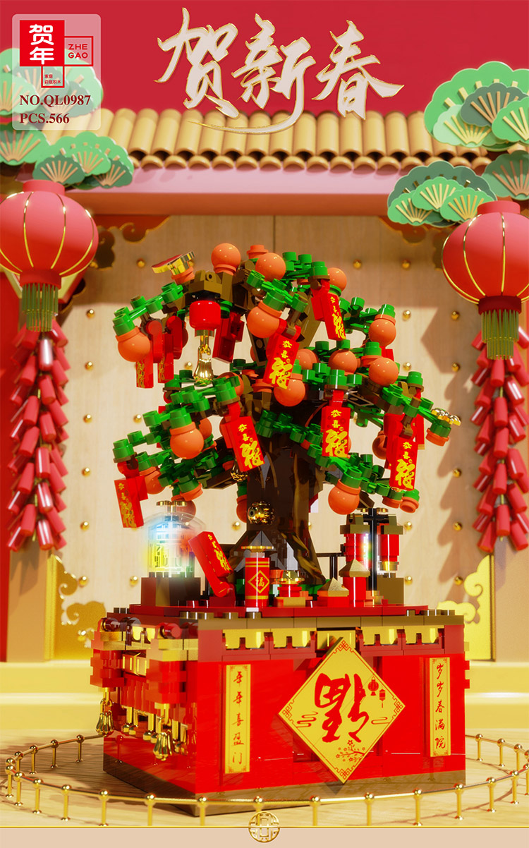 元宵好礼|发财树/舞狮贺岁积木音乐盒 旋转灯光 兼容乐高 节日礼物 送礼必备