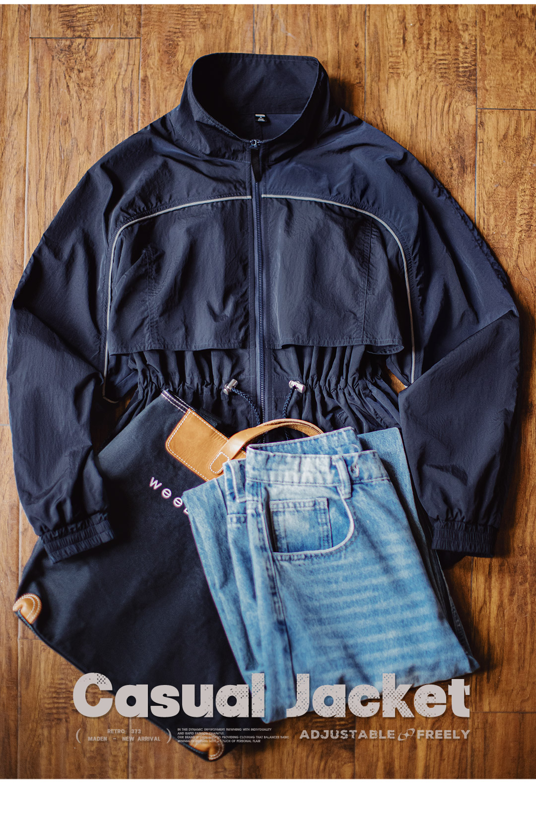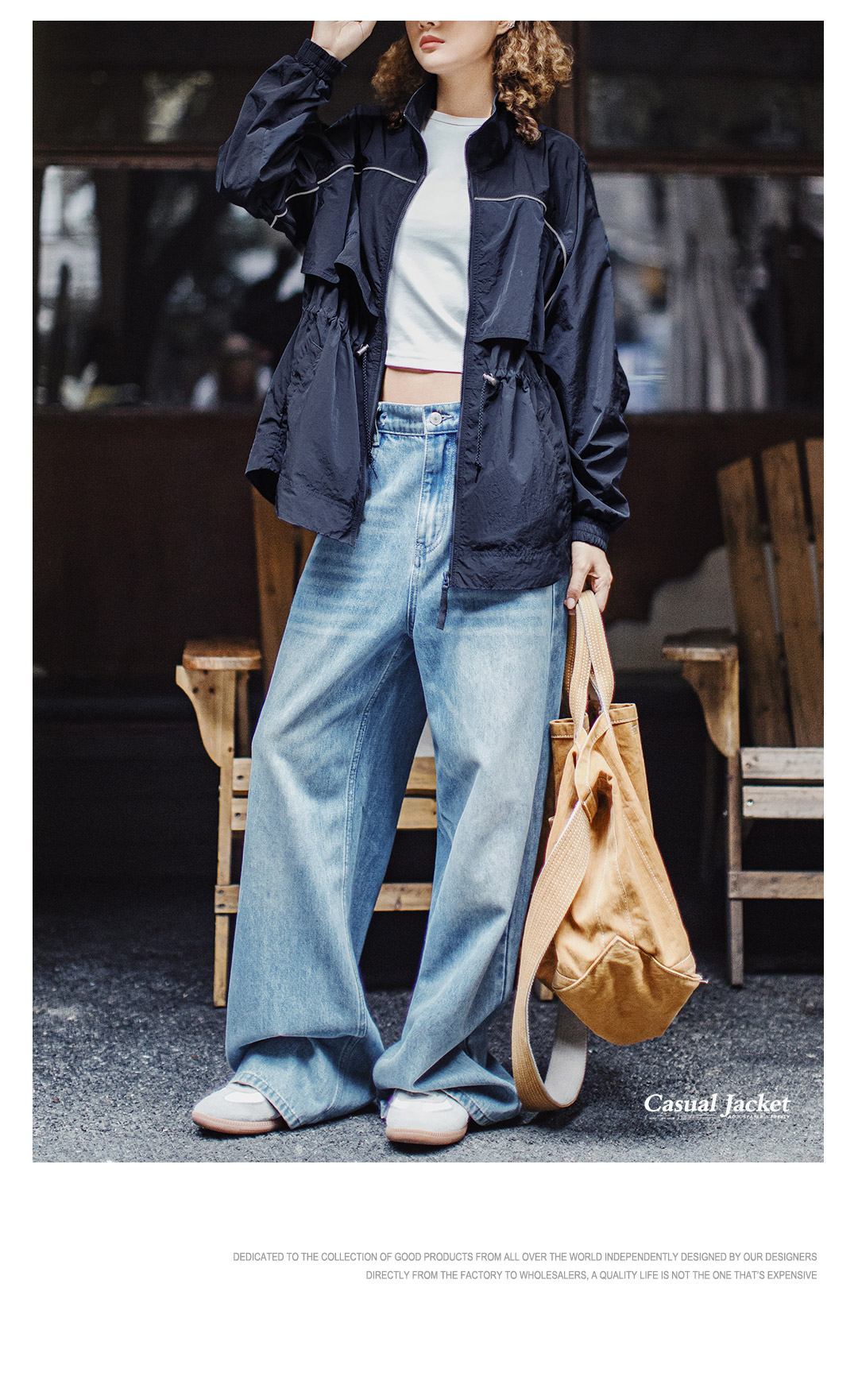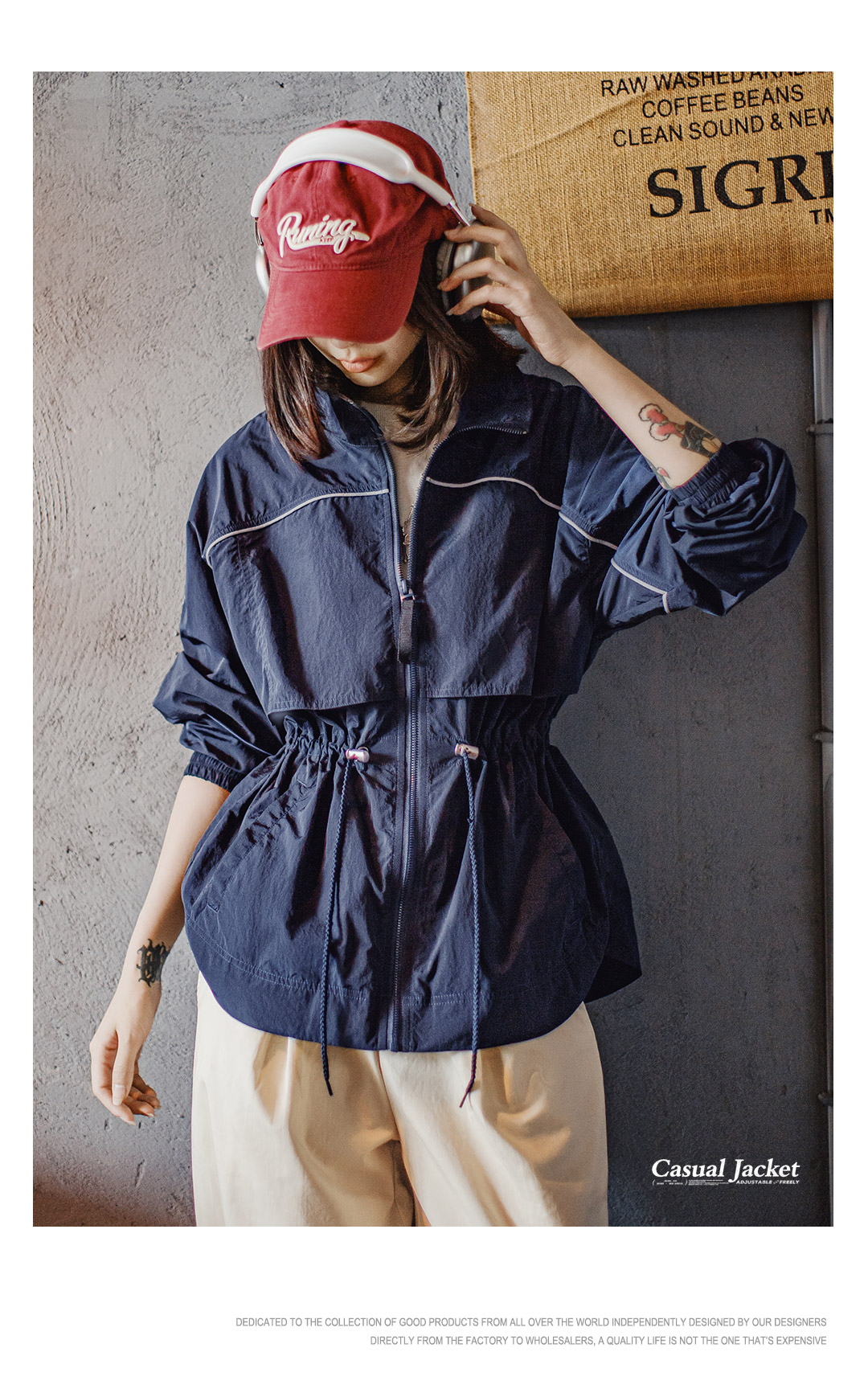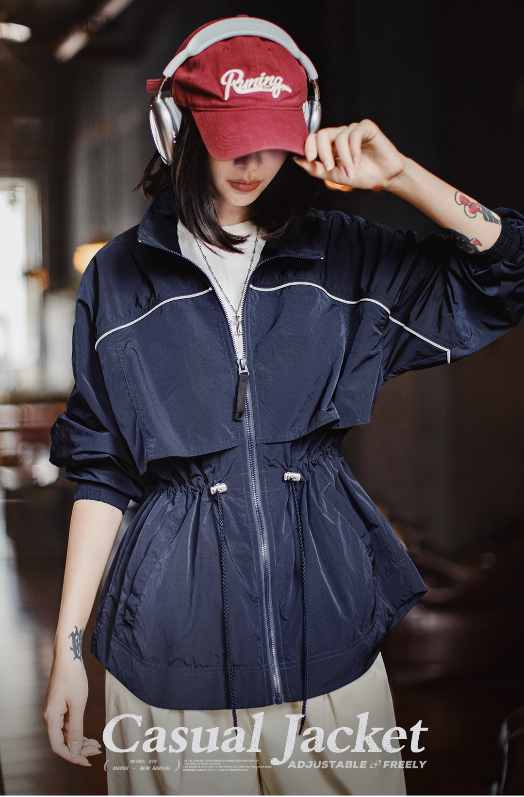 马登美式立翻领宽松轻薄短款收腰派克工装风衣夹克外套女上衣士夏