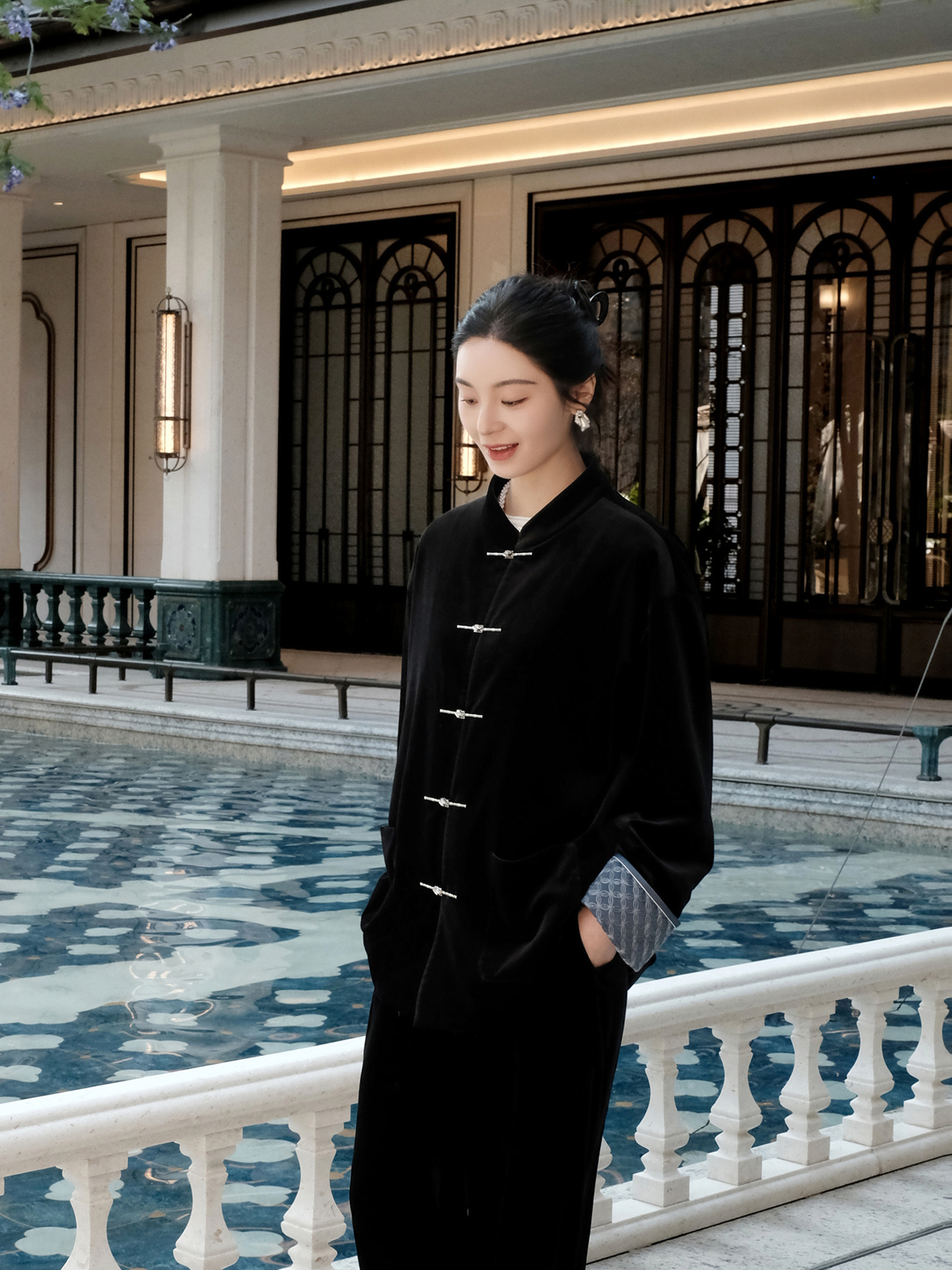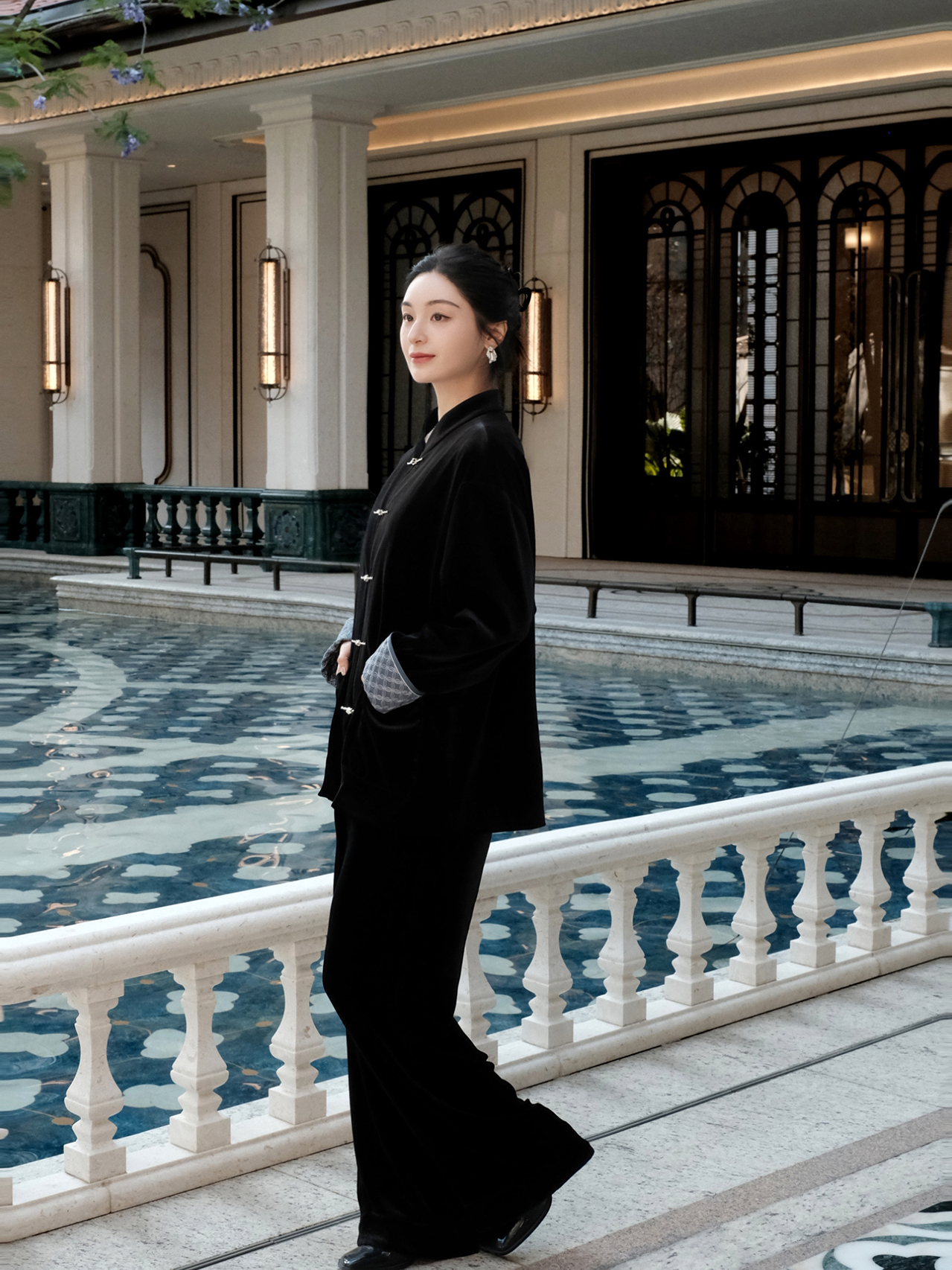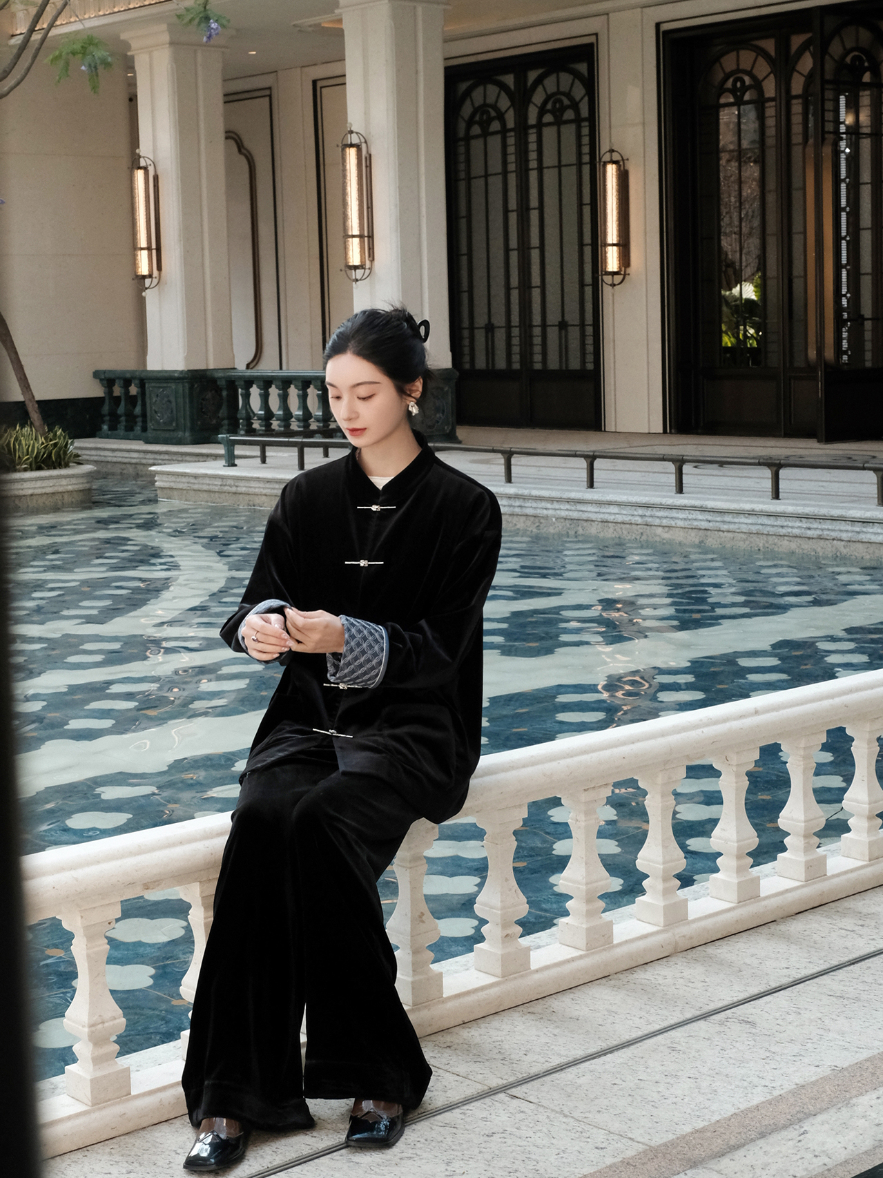 盛唐婧 |新中式丝绒微喇裤黑色