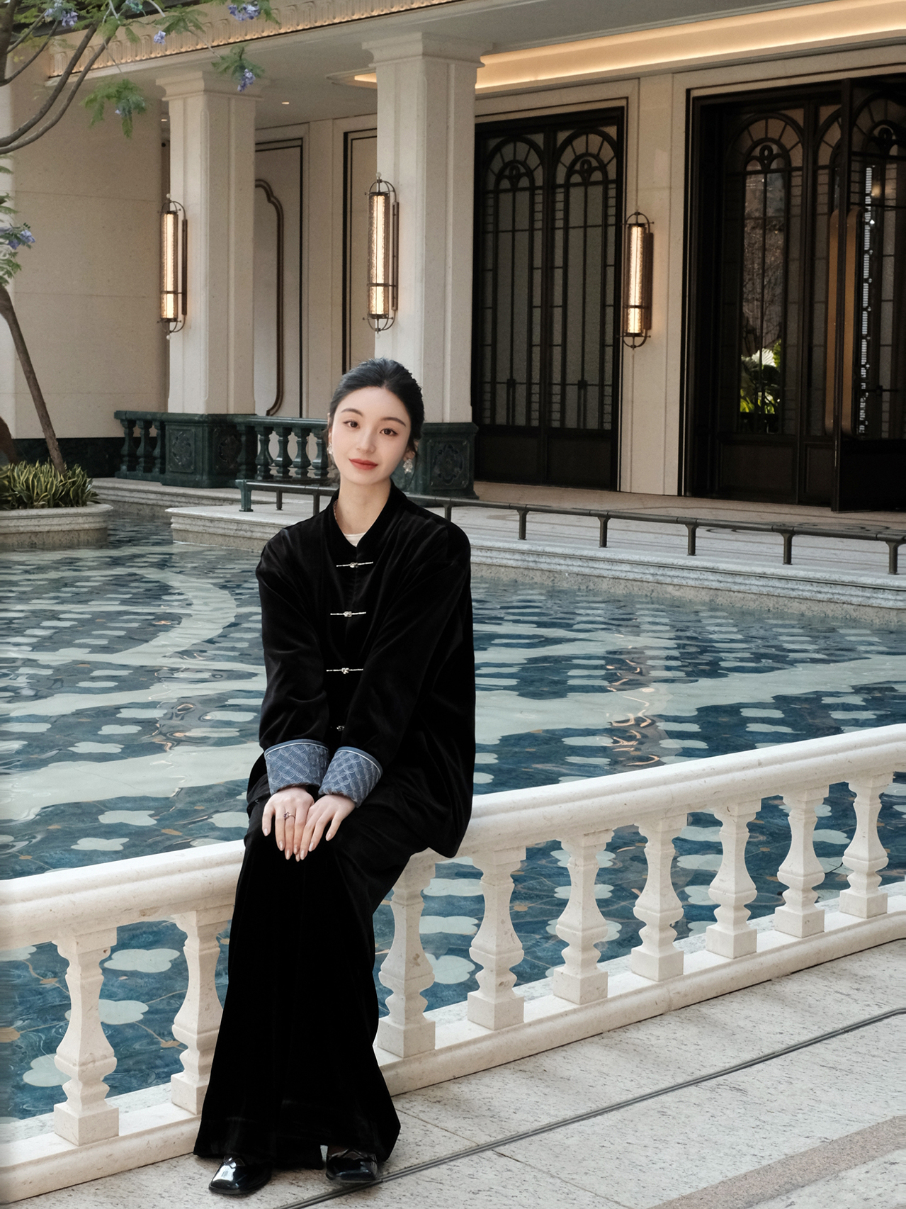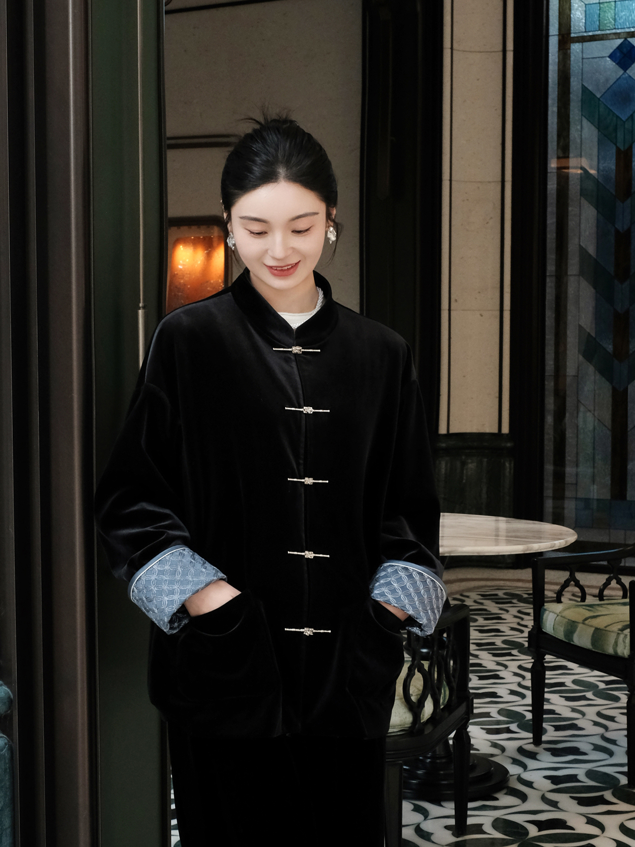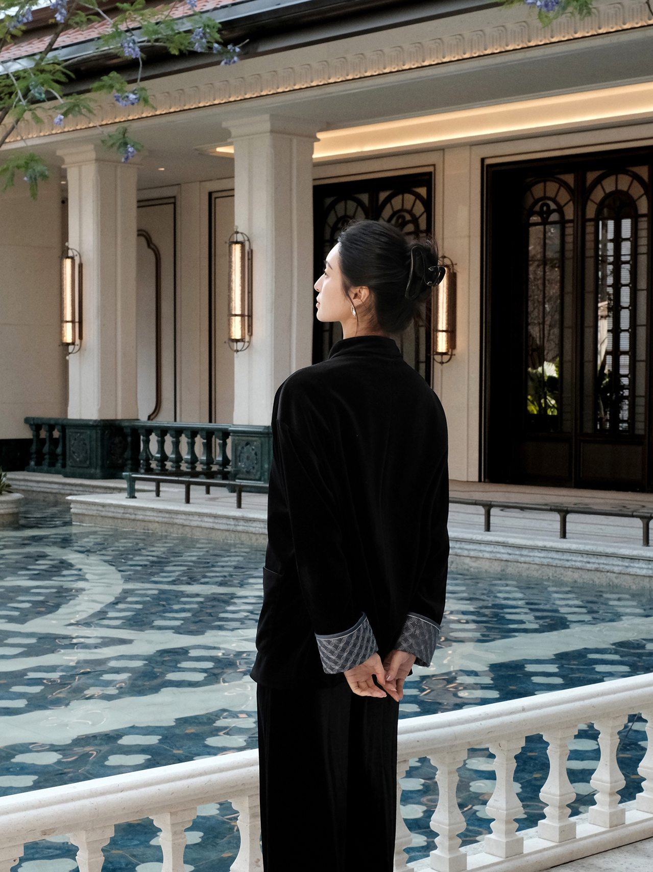 盛唐婧 |新中式丝绒微喇裤黑色