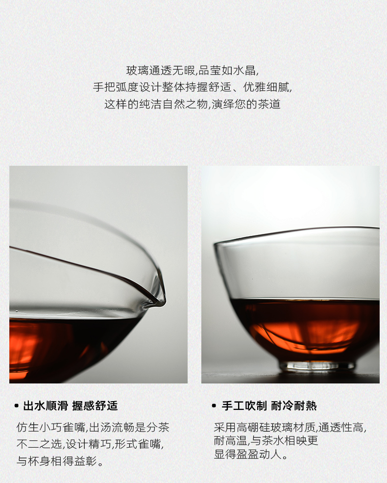 永利汇日式耐热加厚透明玻璃公道杯茶道茶具配件匀杯手抓分茶器