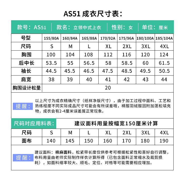 裁缝学苑AS51真丝衬衫纸样女桑蚕丝立领中式唐装上衣茶服衣服裁剪