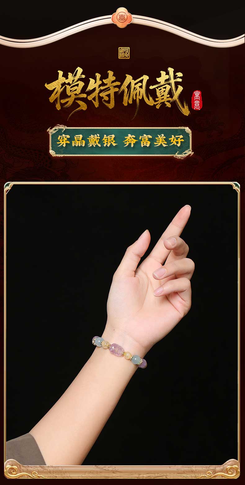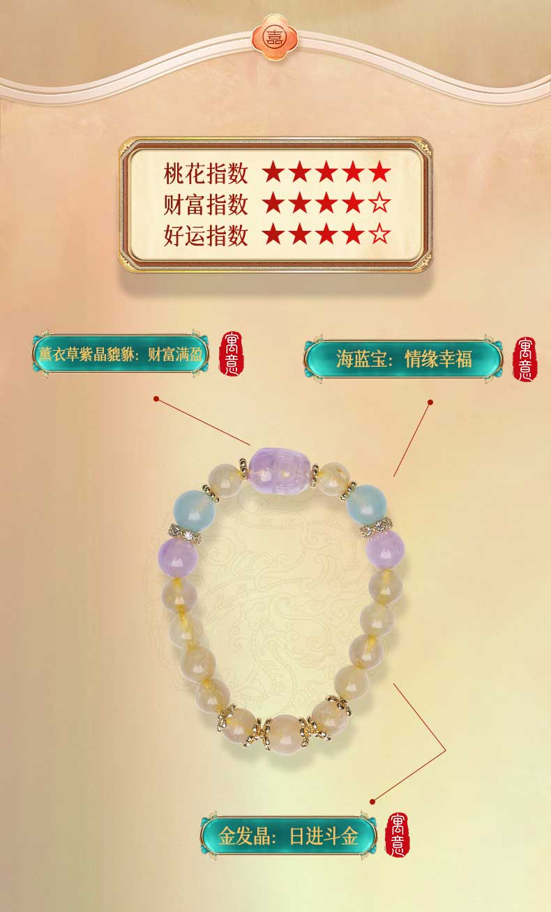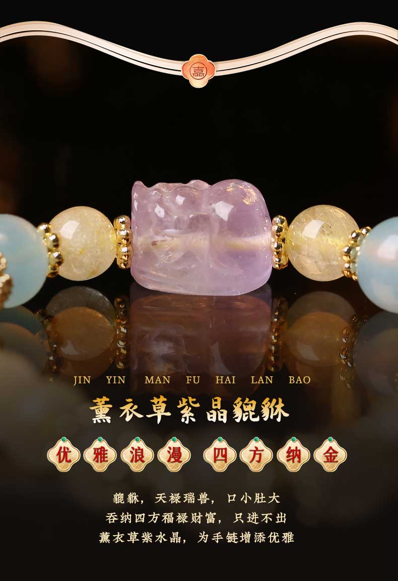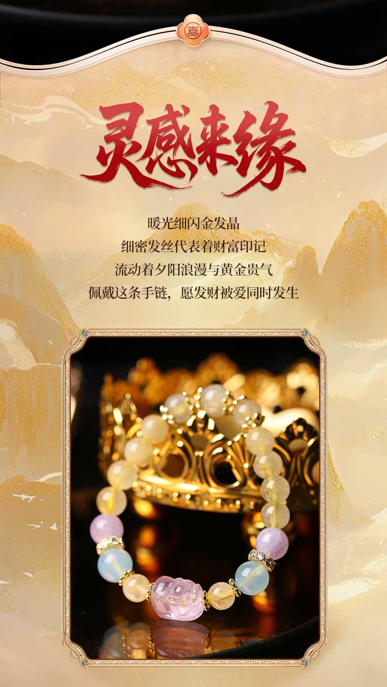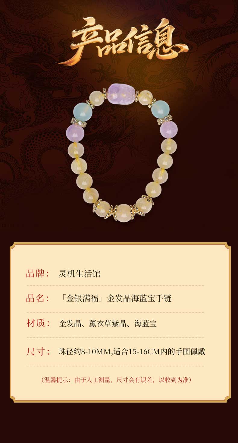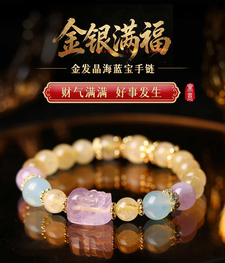 【祈愿吉品】「金银满福」金发晶海蓝宝手链
