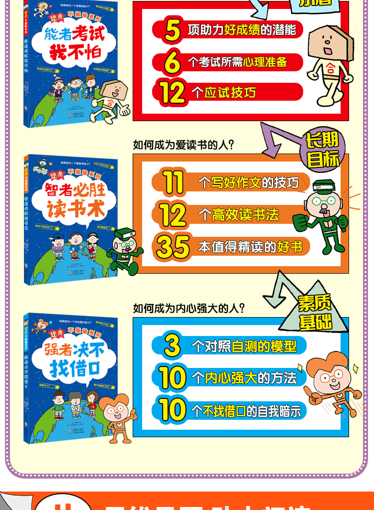 全6册逆商不服输系列第一辑+第二辑给小学生的自主学习秘籍 6-8-10岁儿童绘本强者决不找借口/ 智者必胜读书术/ 能者考试我不怕