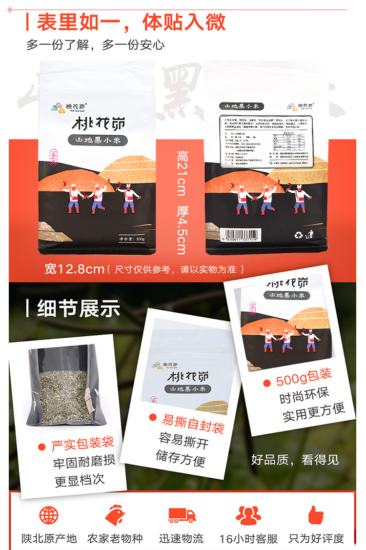 【五谷杂粮】桃花峁米脂山地黑小米500g/袋 自立袋装