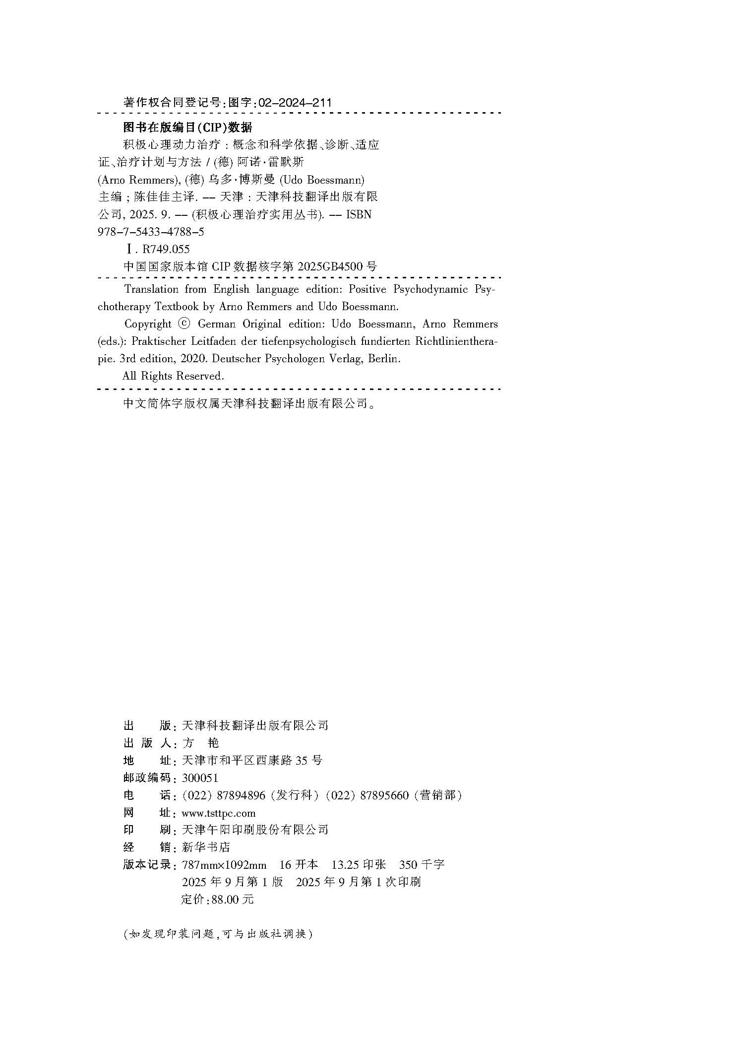 《积极心理治疗实用丛书·积极心理动力治疗 : 概念和科学依据尧诊断尧适应 证尧治疗计划与方法》,16开,平装,80g胶版纸印刷,212页,88元,2025年9月出版。