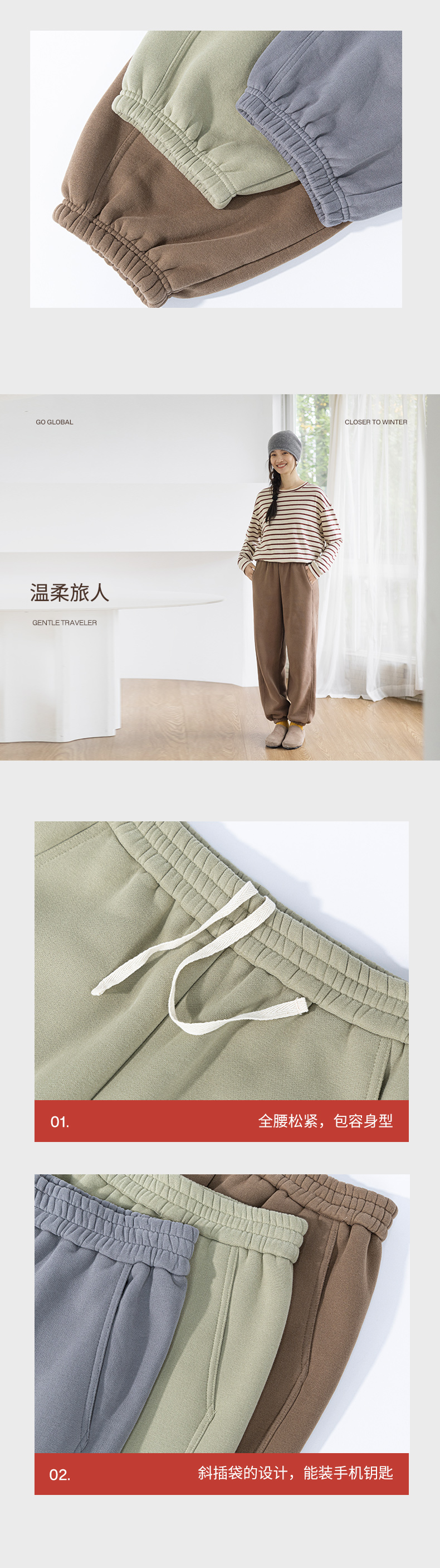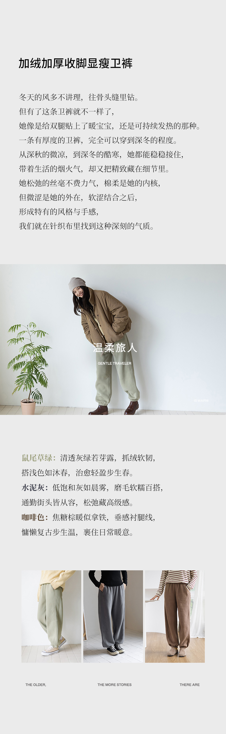 特绽放830朵/三剑客·纯棉加绒加厚收脚显瘦卫裤直筒休闲裤束脚裤