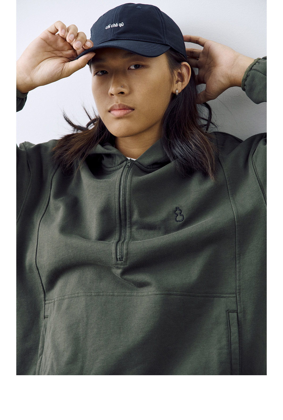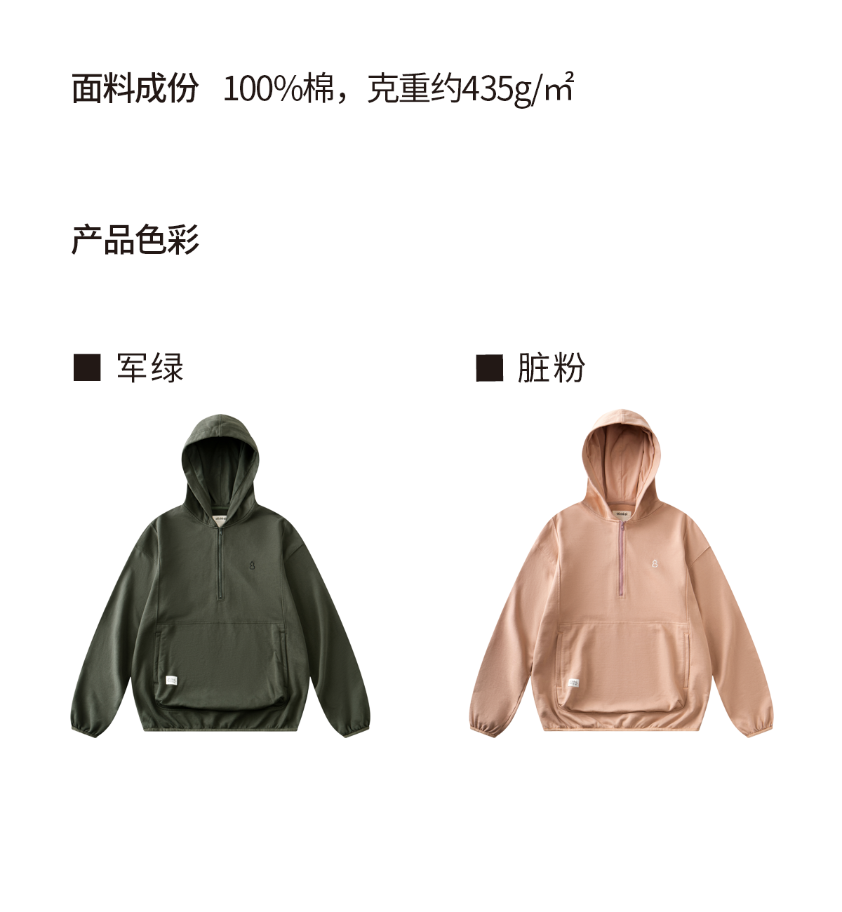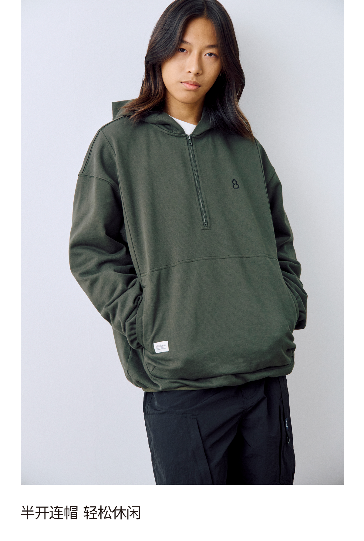 吃茶去chichaqu2024宽松半拉链刺绣连帽卫衣休闲运动百搭
