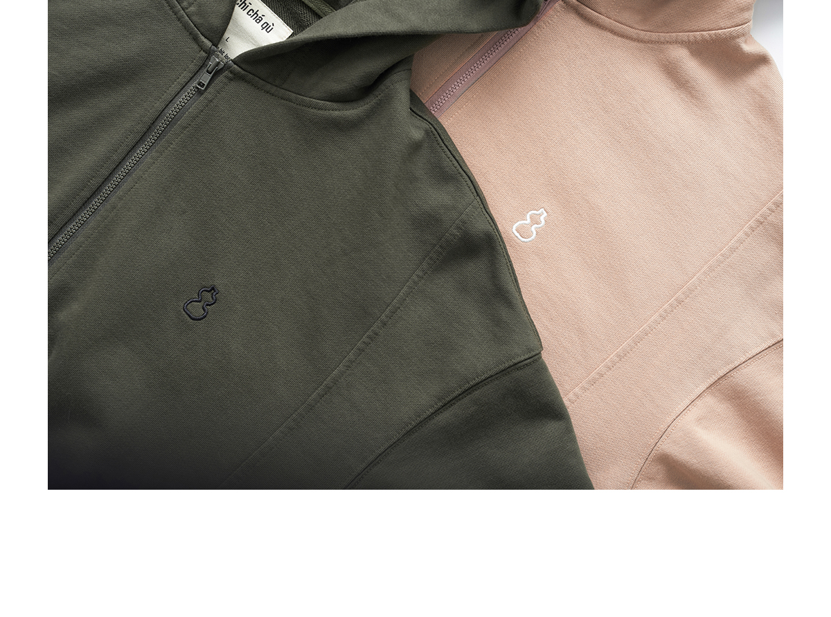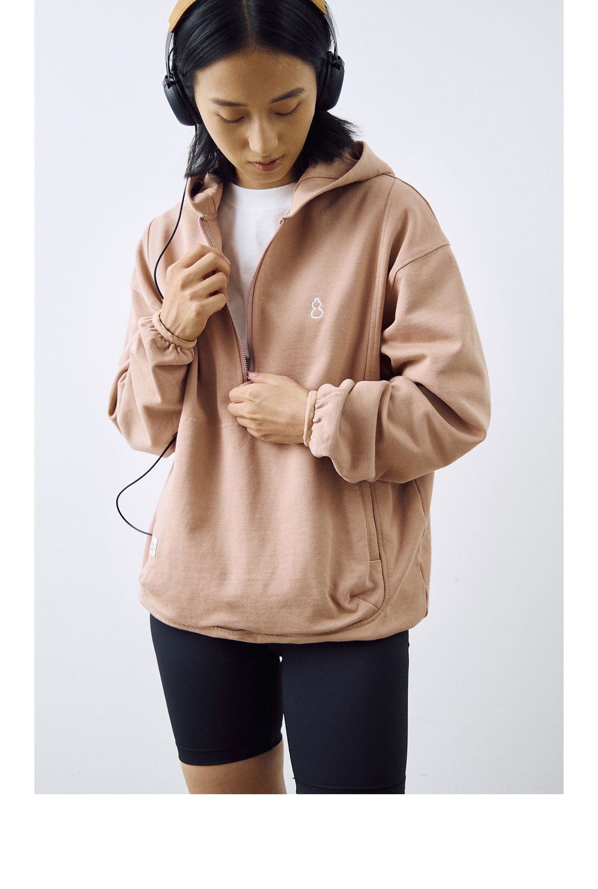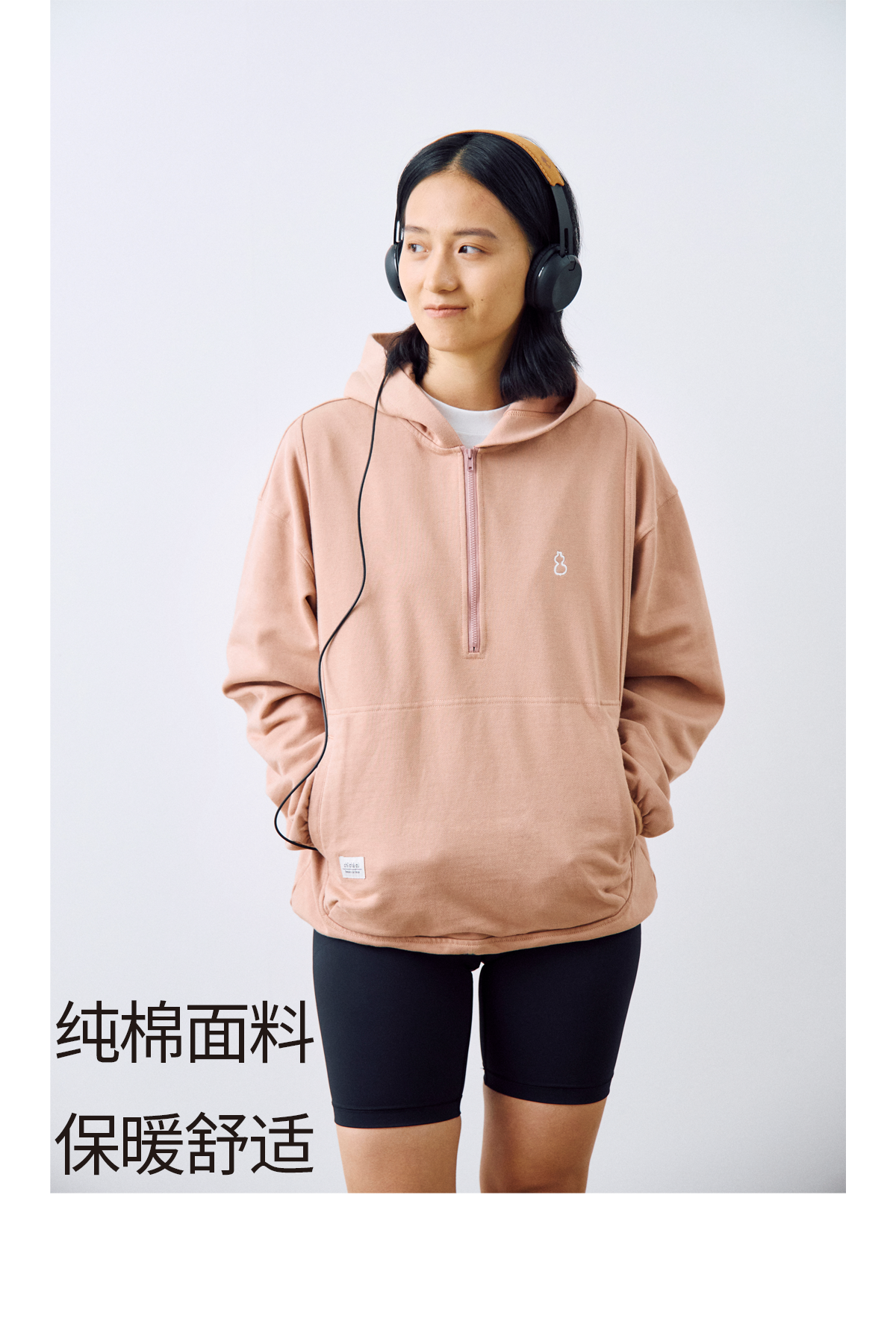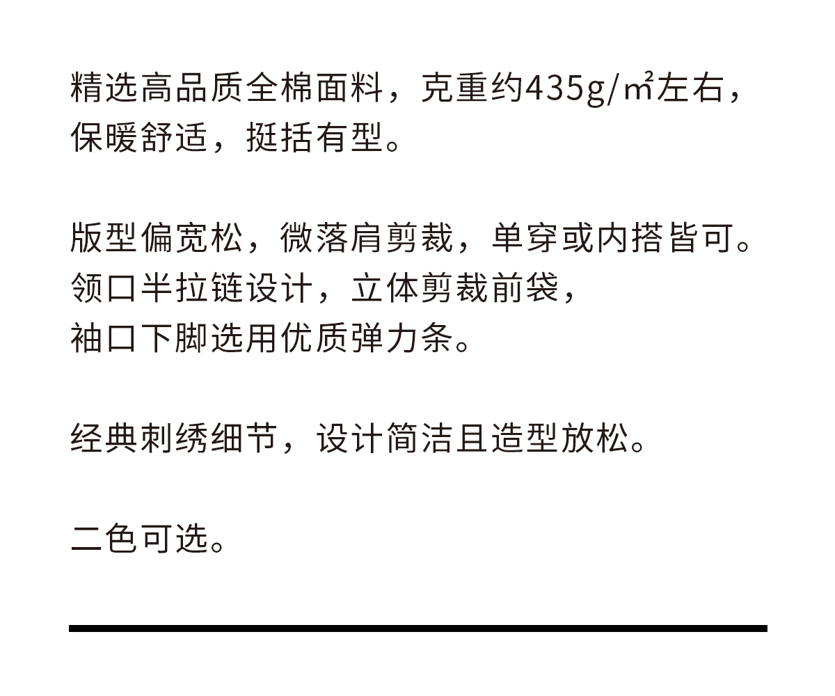 吃茶去chichaqu2024宽松半拉链刺绣连帽卫衣休闲运动百搭