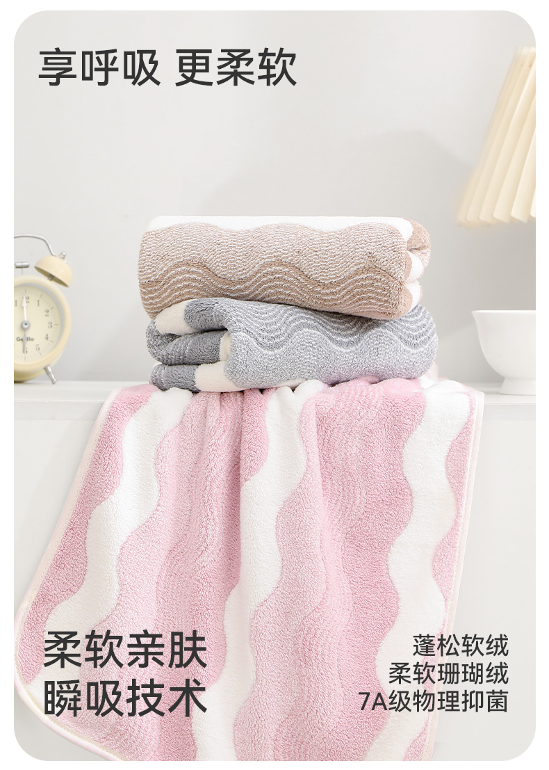 三利7A抗菌毛巾珊瑚绒吸水速干柔软洗澡洗脸专用面巾情侣家用毛巾
