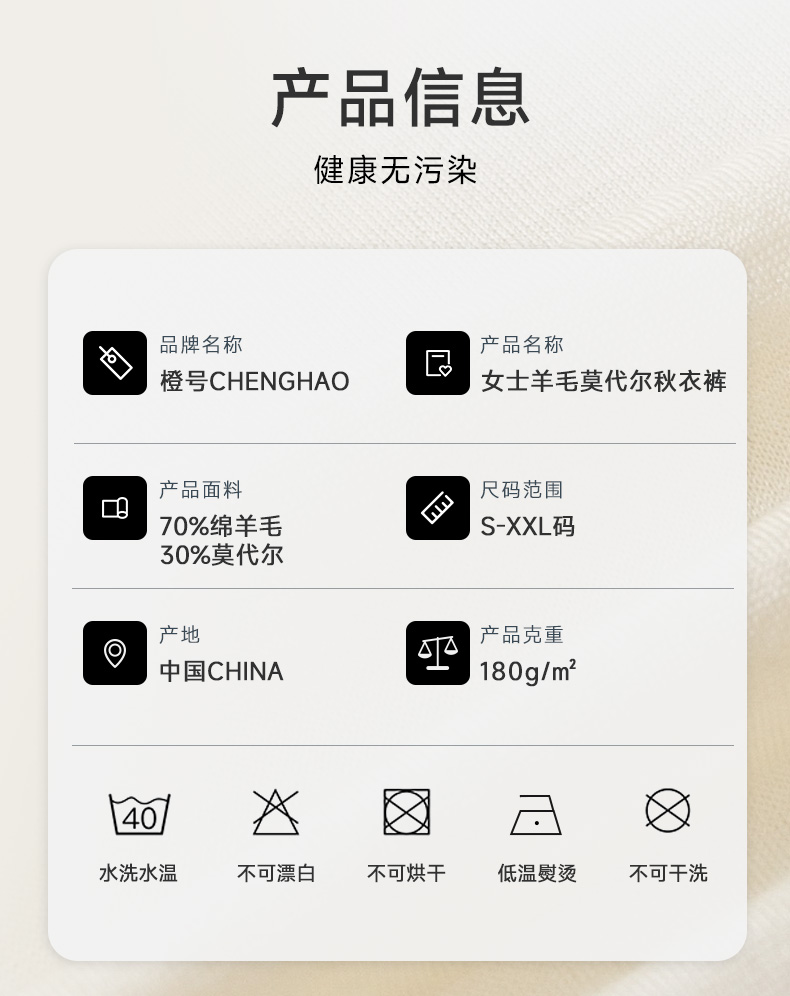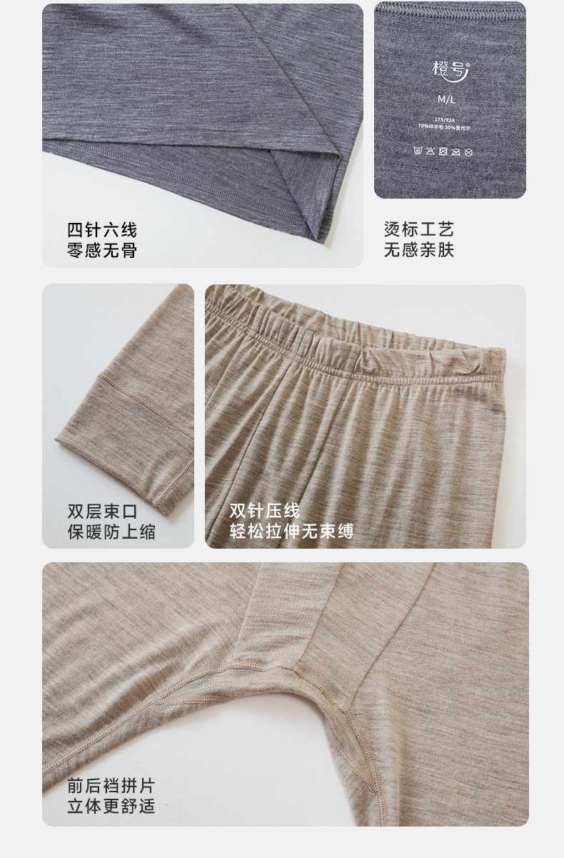 低于双12【S-3XL】橙号70%美丽诺羊毛+30%莫代尔男女士秋衣秋裤2025年 克重180g/㎡
