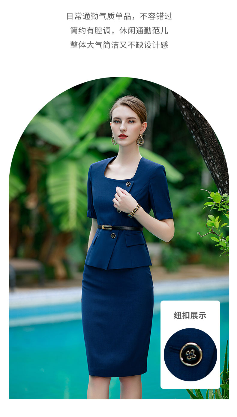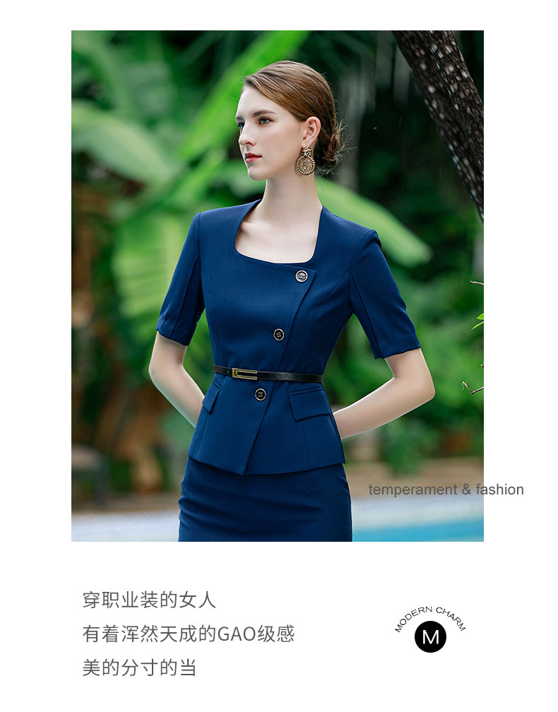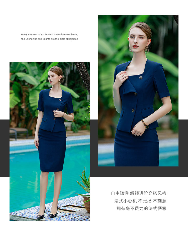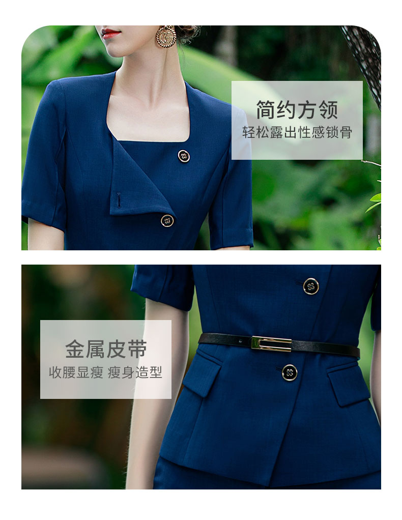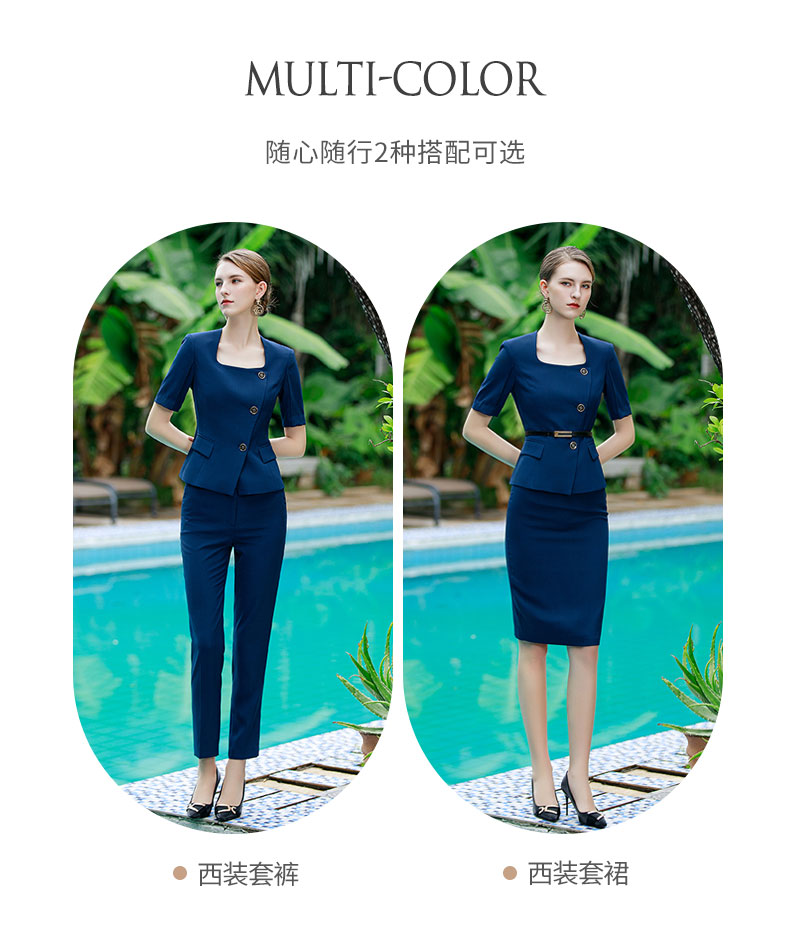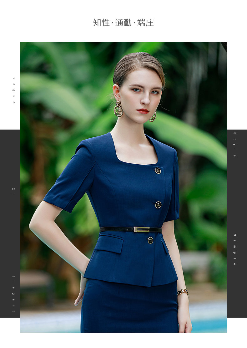 AD藏青色西装正装女高端售楼部工装职业装气质女神范套装方领西服