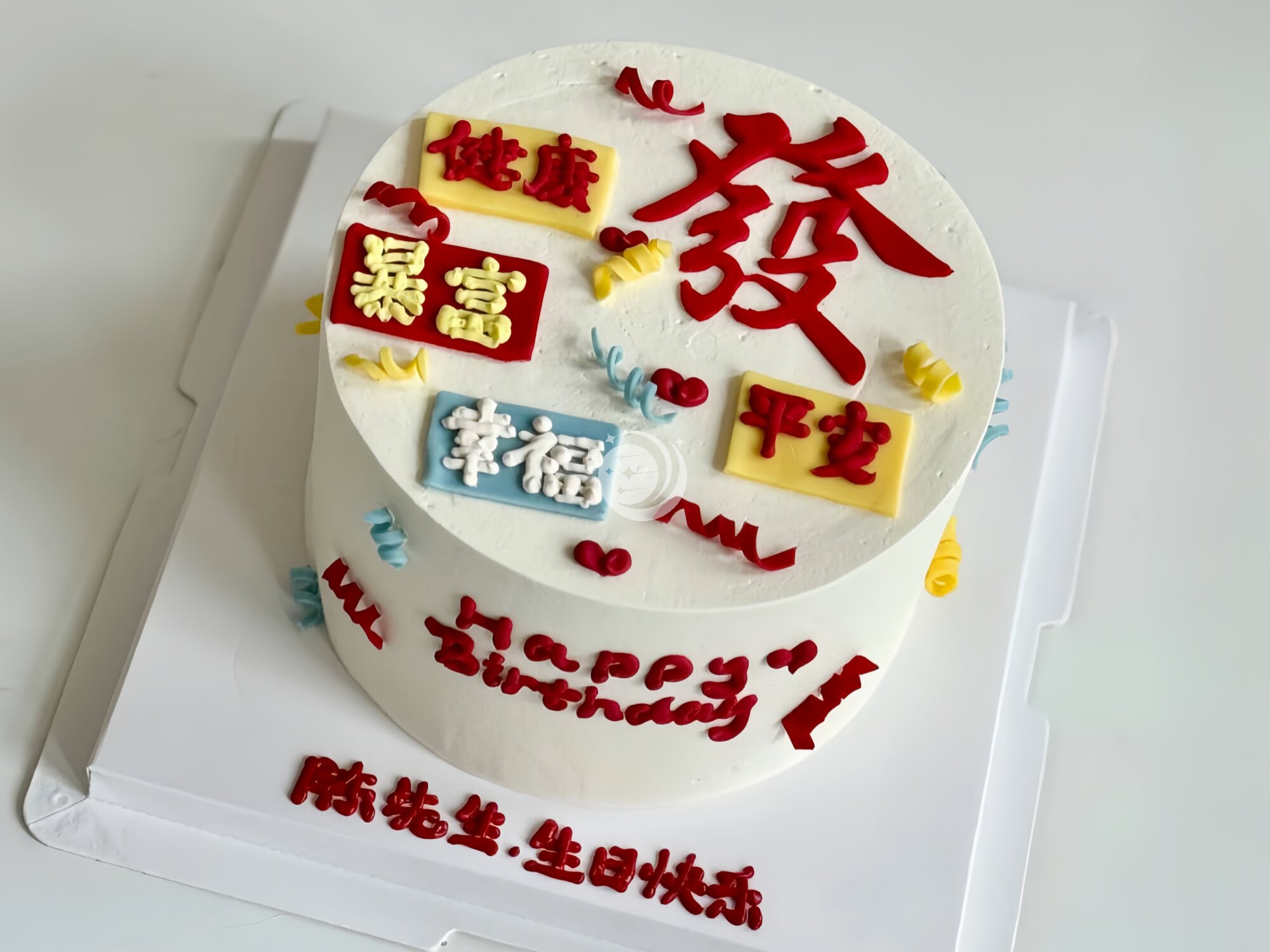 『暴富发财』简约手绘蛋糕