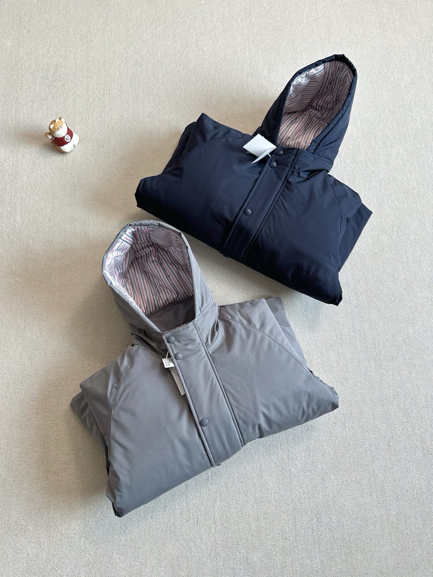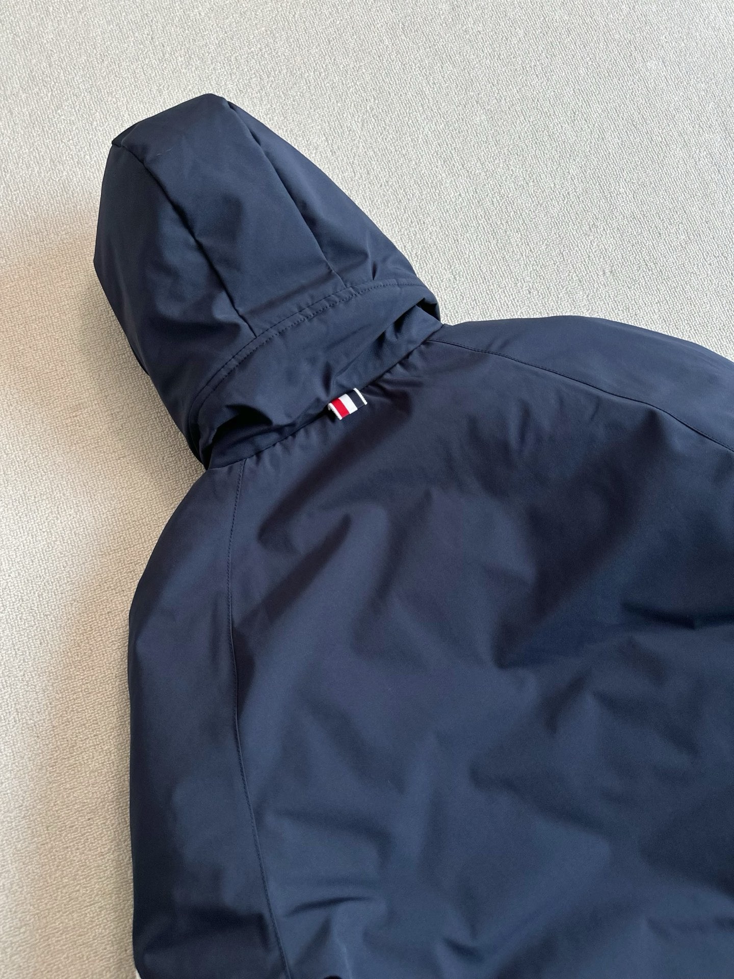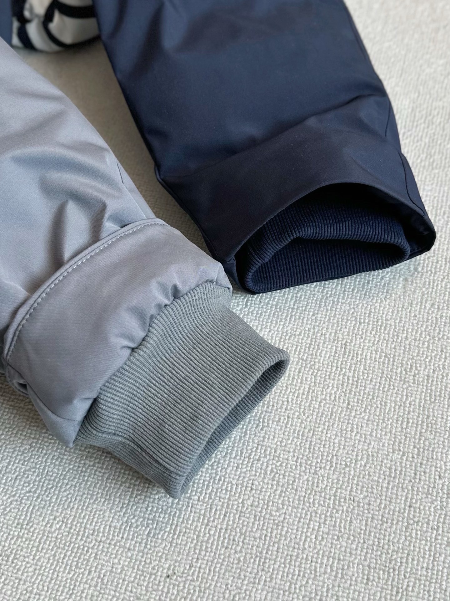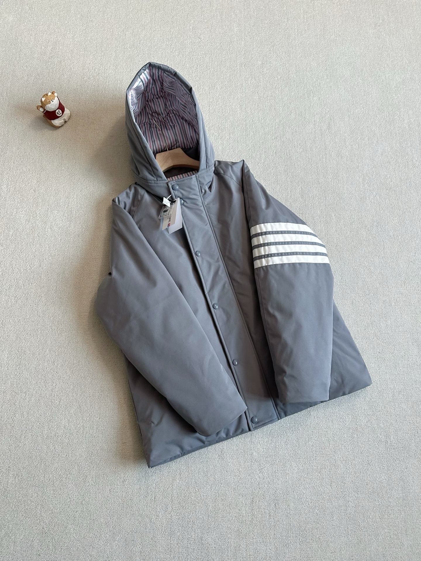 四杠荷包彩条80鹅绒羽绒男女同款加厚连帽羽绒服