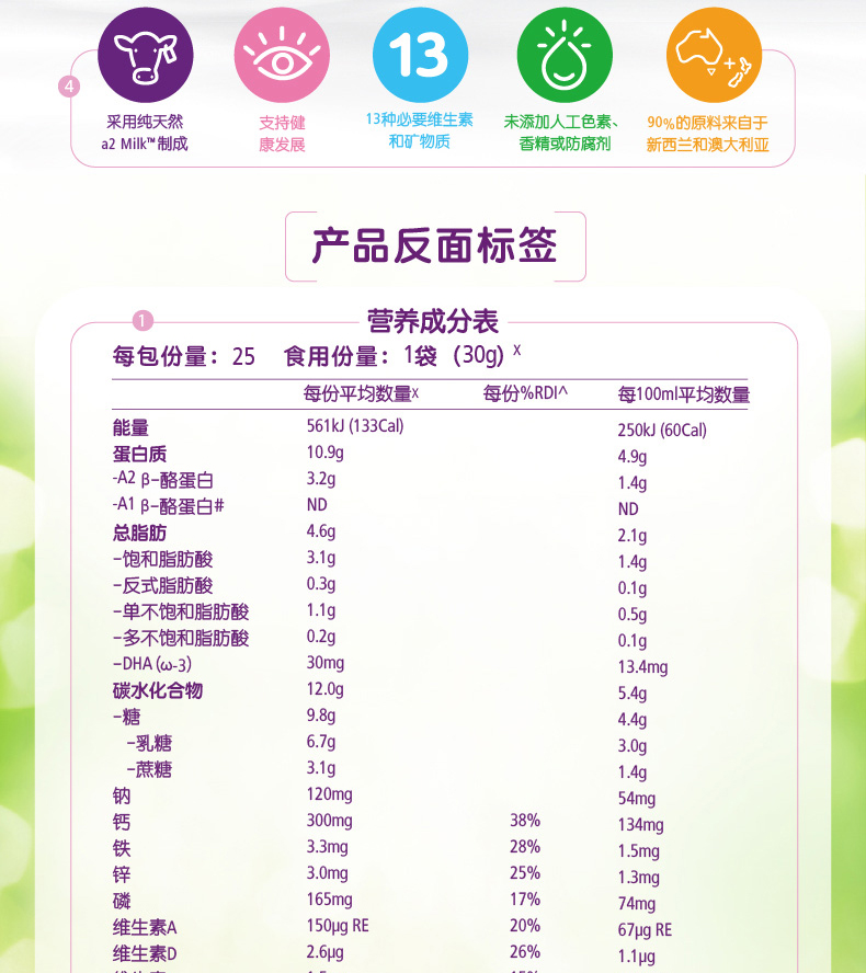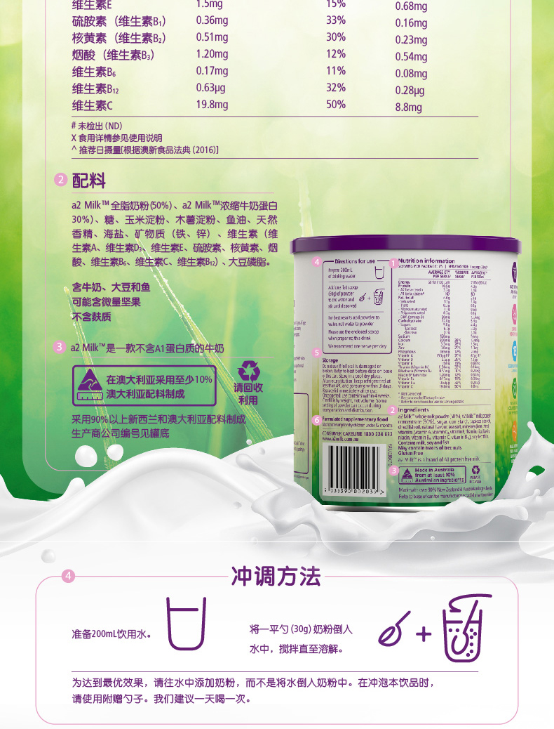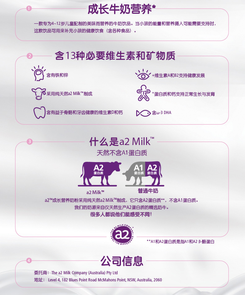 【保税区】新西兰a2儿童成长营养奶粉4-12岁原装进口奶粉750g
