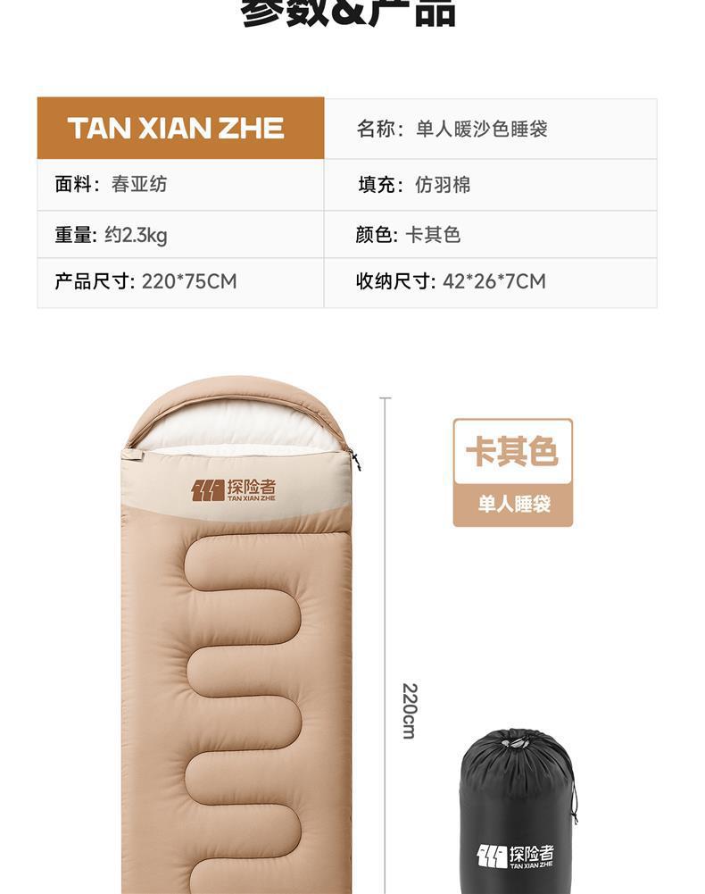 运动户外-探险者睡袋成人户外露营四季通用款便携式