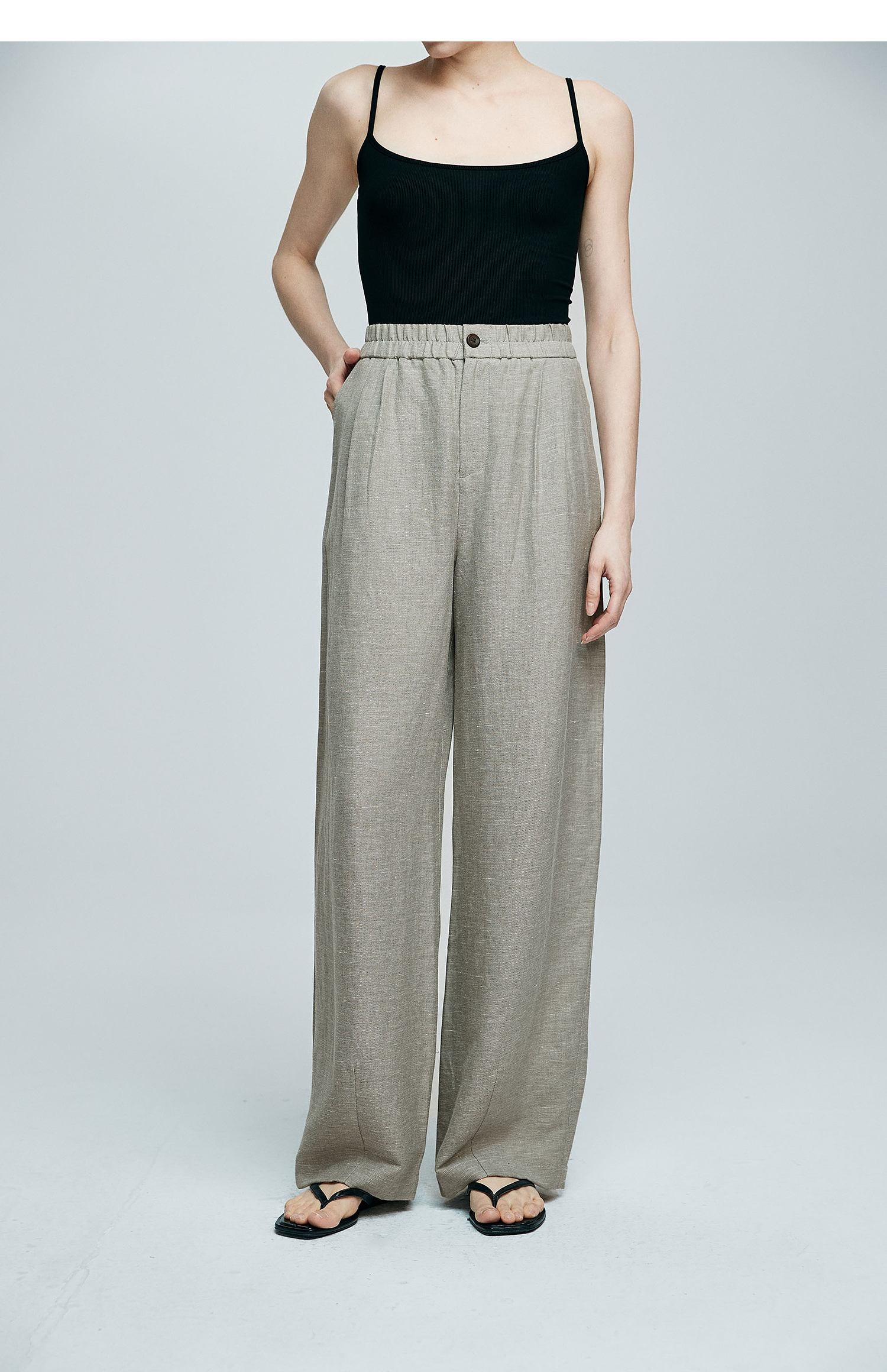 棉仓363618017-初棉天然麻垂感直筒阔腿裤