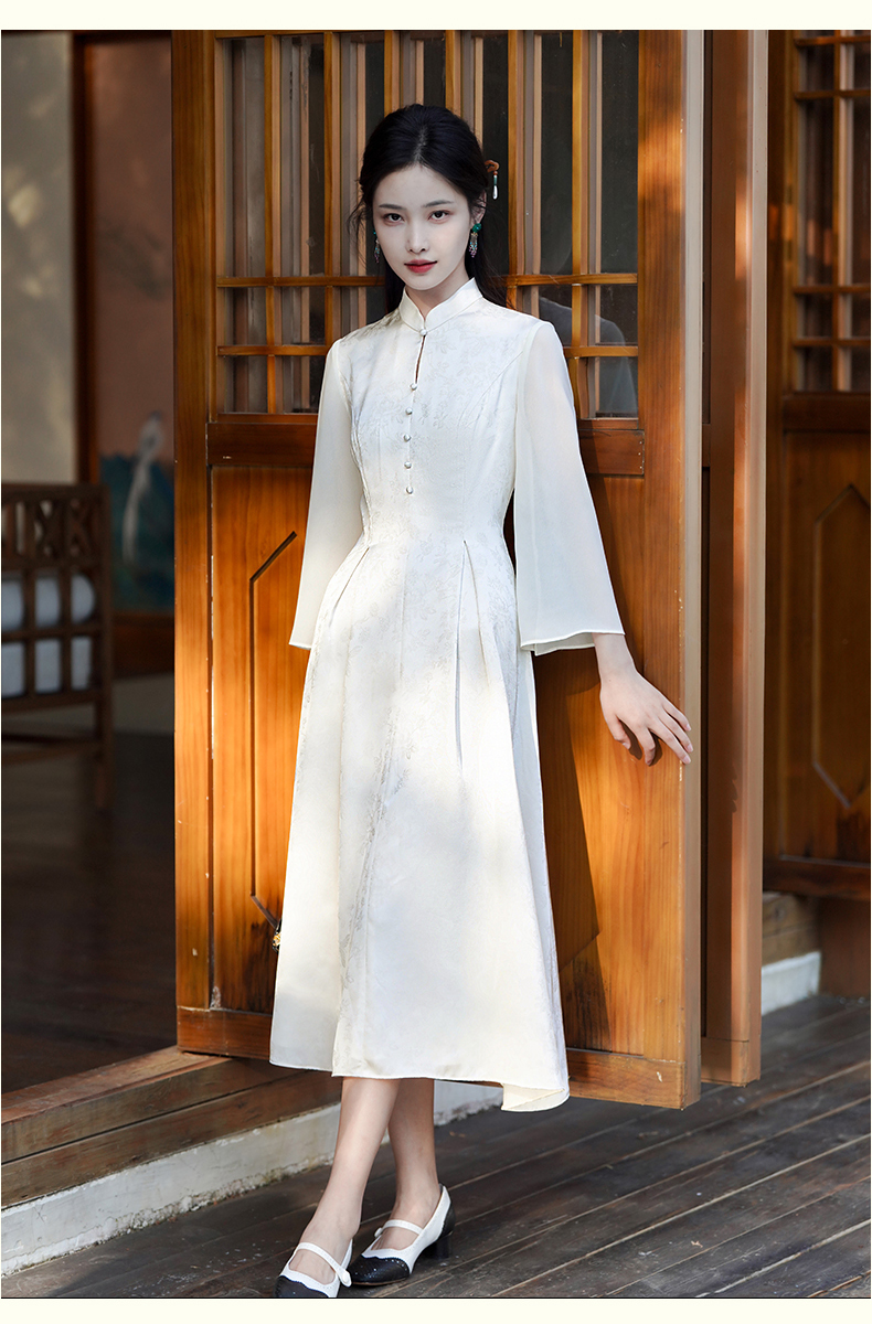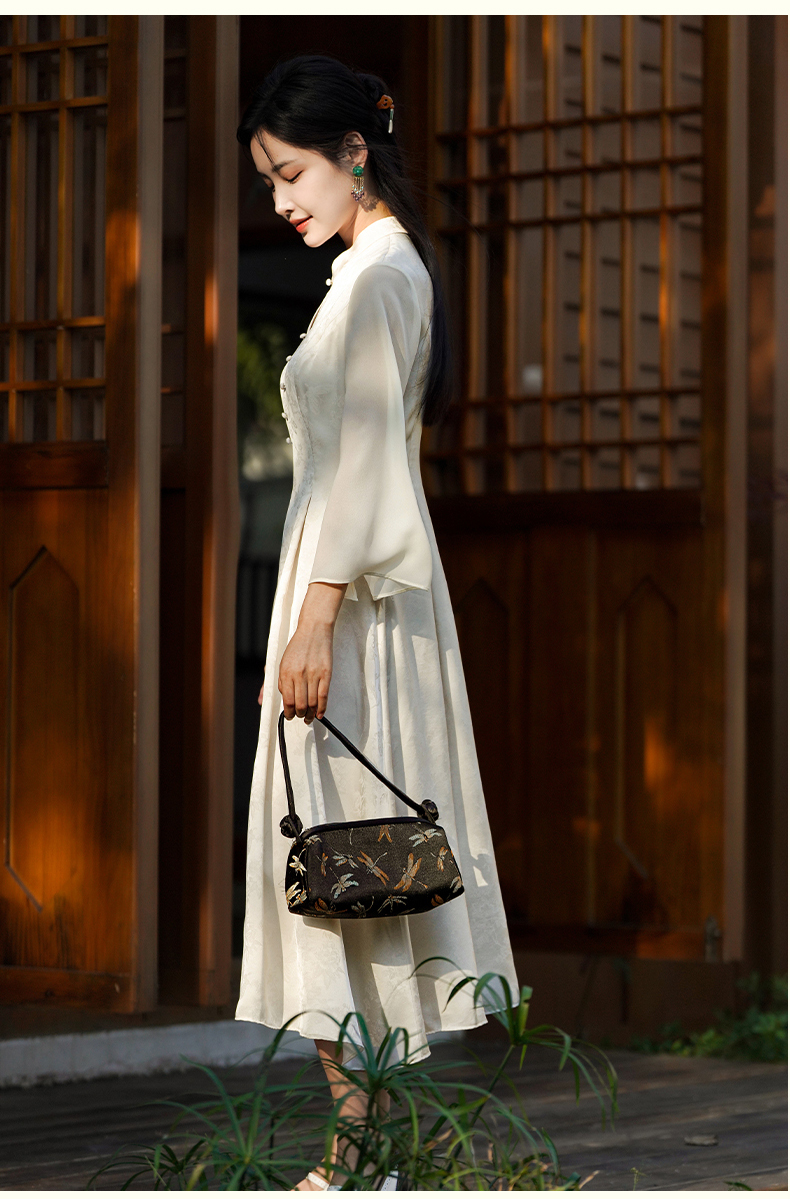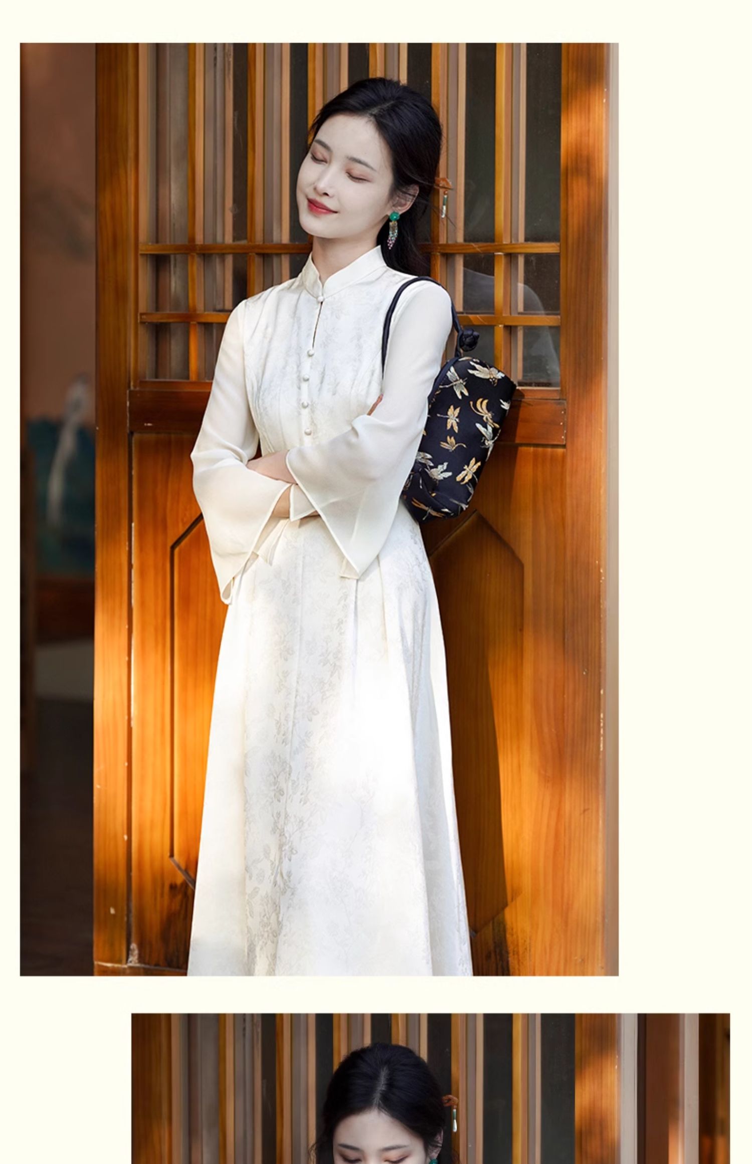 上海逸红颜岚音2025年秋季新款高级感新中式轻国风长袖旗袍连衣裙